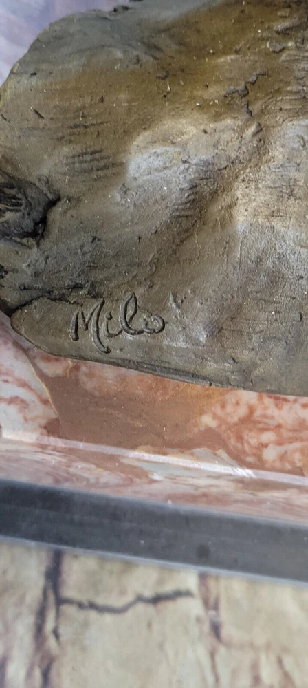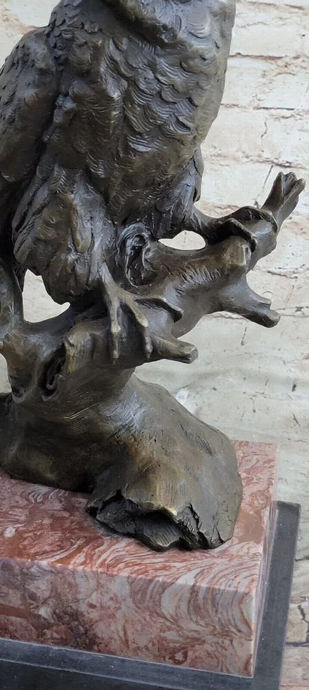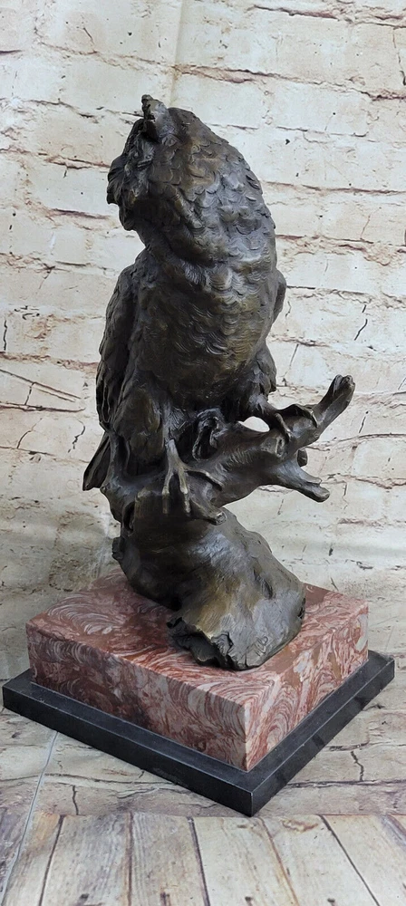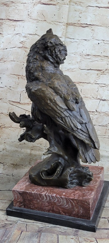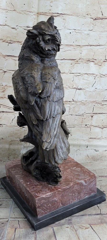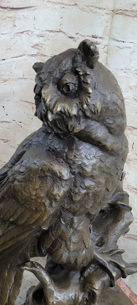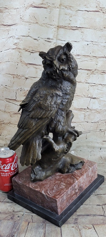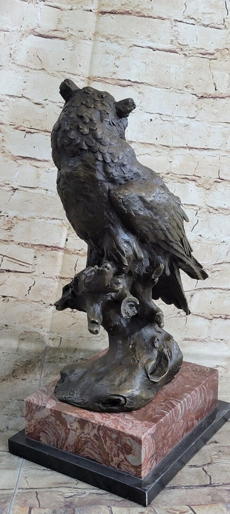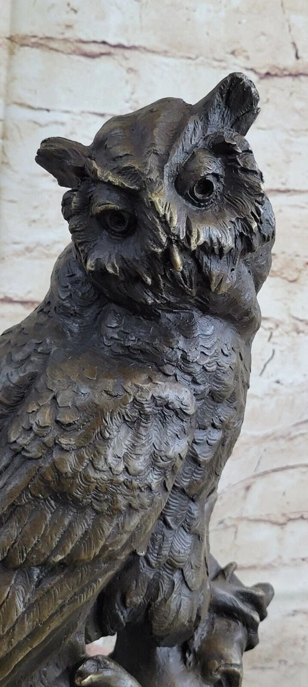 Rare Wildlife Art: Signed Owl Bird Bronze Statue by Miguel Lopez Hand Made Gift Rare Wildlife Art: Signed Owl Bird Bronze Statue by Miguel Lopez Hand Made Gift Condition : This sculpture is in perfect condition. Bronze Dimensions with Marble Base: Height 17" X Width 8.5" Marble Dimensions:8.5" X 7" Height without base:14" Weight:30 LBS Inventory:54AL20018537 Exquisite Bronze Owl Sculpture by Miguel Lopez (Milo) – A Timeless Masterpiece Elevate your collection with this stunning bronze owl sculpture, handcrafted by the esteemed artist Miguel Lopez (Milo). This captivating piece beautifully captures the mystique and wisdom of the owl, showcasing intricate details from its textured feathers to its intense, watchful gaze. Crafted using the traditional lost-wax casting method, this sculpture ensures the finest level of detail and durability. The rich brown patina enhances the lifelike quality of the owl, while the solid black marble base provides both stability and a touch of elegance. This masterpiece is signed by Milo, guaranteeing its authenticity and value as a sought-after collector's item. Perfect for home decor, office spaces, or as a unique gift, this majestic owl sculpture embodies wisdom, intuition, and artistic excellence. Let this timeless piece add sophistication and charm to your space, making a lasting impression on all who admire it. Signed Original Artwork by Miguel Lopez Known as Milo Owl Bird Bronze Sculpture Video will open in a new window Using the eBay App? Paste link into a browser window: [isdntekvideo] Shipping Terms : Most of our items are shipped via USPS (United States Postal Service) mail or UPS. Most orders are shipped within 24-48 hours of purchase. Please be aware that not all items are available for USPS shipping due to size and weight. We do ship to Hawaii, Alaska, Canada, Puerto Rico, APO/AE, and U.S. Virgin Islands, however, an additional charge may be required. Please contact us before making any purchases in these areas. For Non-USA customers, you may be responsible for all duty, tax, brokerage fees that may be due upon delivery (shipping costs cover freight charges only). We also ship internationally. Please refer to the "Shipping and Handling" chart for the rates for each area. Payment : We accept just about any form of payment. PayPal, Master Card, Visa or American Express credit cards. Money orders, cashiers checks, and even personal or business checks. For governmental institutions, we will also accept a purchase order. Please understand that for personal or business checks we have to wait for the check to clear (usually 7 days) before shipping. Condition : New Detailed Hand Crafted Hot Cast Bronze Satisfaction Guaranteed. This is Stock Photo, Slight Color Variation!! Listing and template services provided by inkFrog