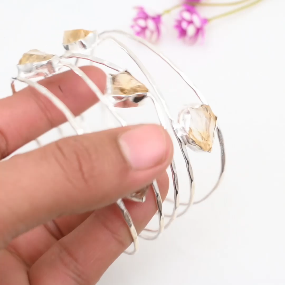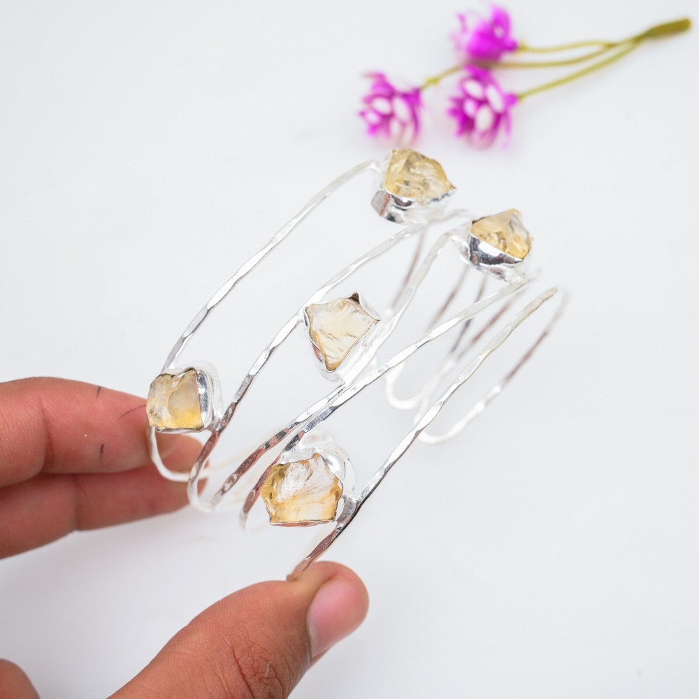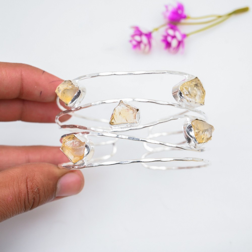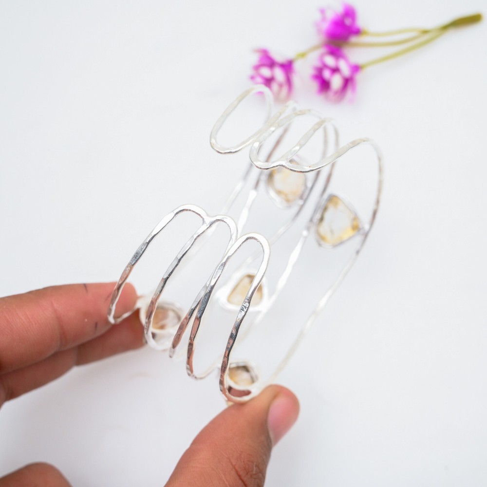 Colored Diamond Intensity:N/ACertification:N/ATheme:Beauty, Bohemian, Ethnic, Halloween, LoveFeatures:AdjustableMain Stone Length:N/ASecondary Stone:CitrineMain Stone Treatment:Not EnhancedMain Stone:CitrineMain Stone Depth:N/AMain Stone Creation:NaturalDiamond Clarity Grade:N/AMain Stone Width:N/ACountry/Region of Manufacture:IndiaMetal:Sterling SilverSetting Style:BezelChain Type:N/ABrand:HandmadeMain Stone Shape:Same As PictureCut Grade:ExcellentTotal Carat Weight:10 carat and aboveItem Length:AdjustableClosure:AdjustableMain Stone Color:YellowCountry of Origin:IndiaCharm Type:Same As PictureNumber of Gemstones:5Style:CuffShape:Same As PictureColor:SilverNumber of Diamonds:N/AType:BangleBase Metal:Sterling SilverDiamond Color Grade:N/AMetal Purity:925Collection:HandmadeMaterial:GemstoneOccasion:Anniversary, Birthday, Christmas, Engagement, Mother's Day, Valentine's Day, Wedding