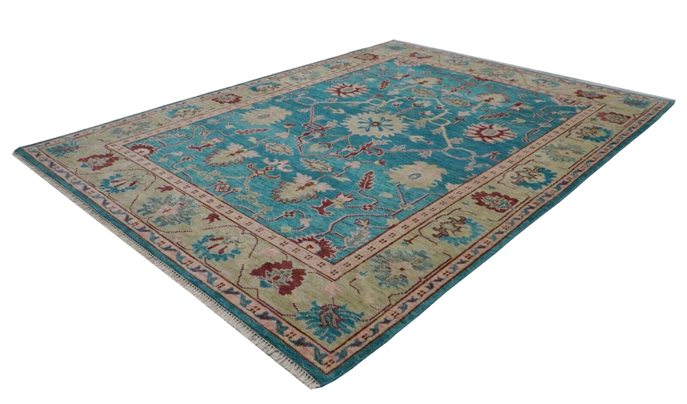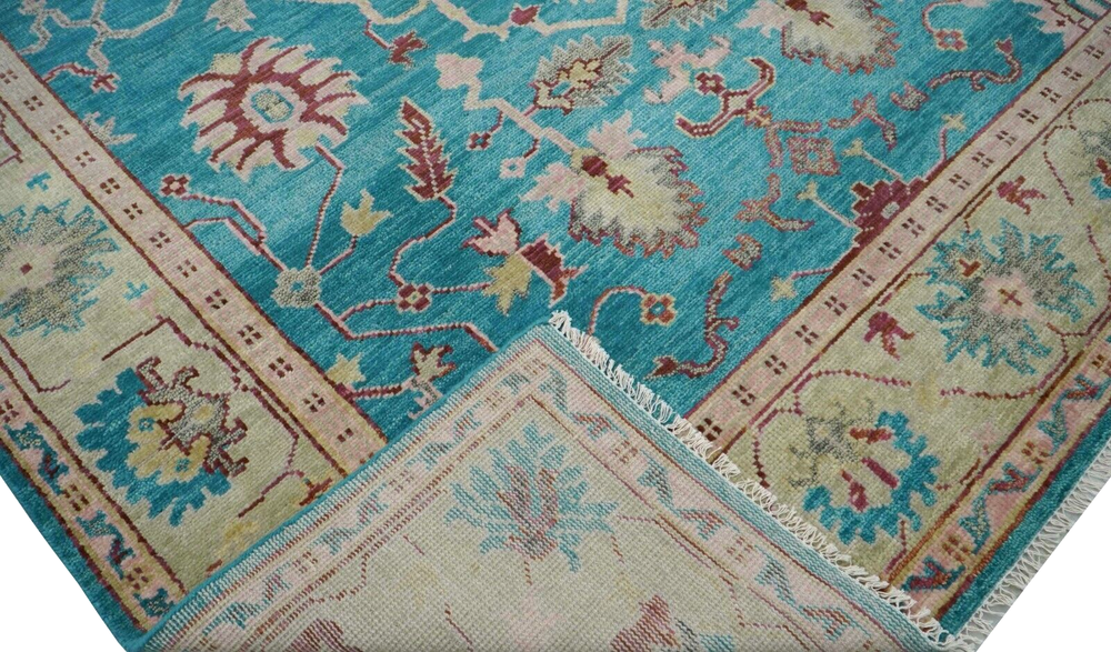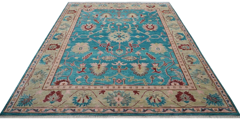 Handmade Traditional Teal 9x12 ft Oushak Wool Area Rug | Customizable Carpet