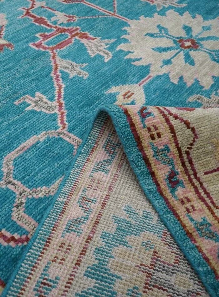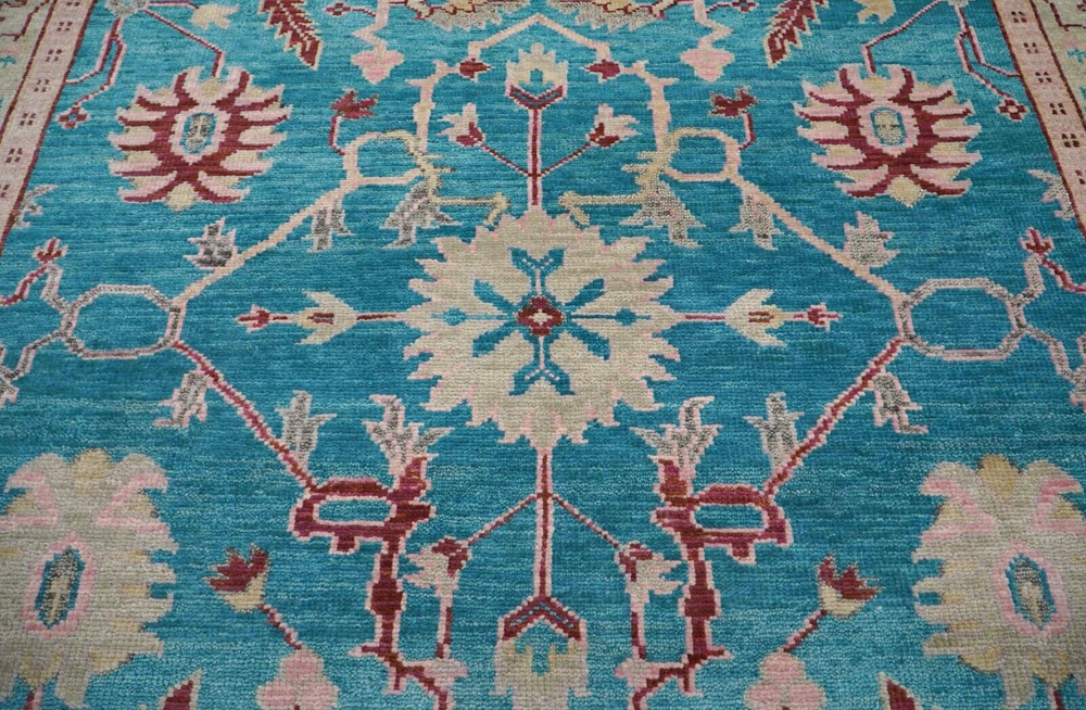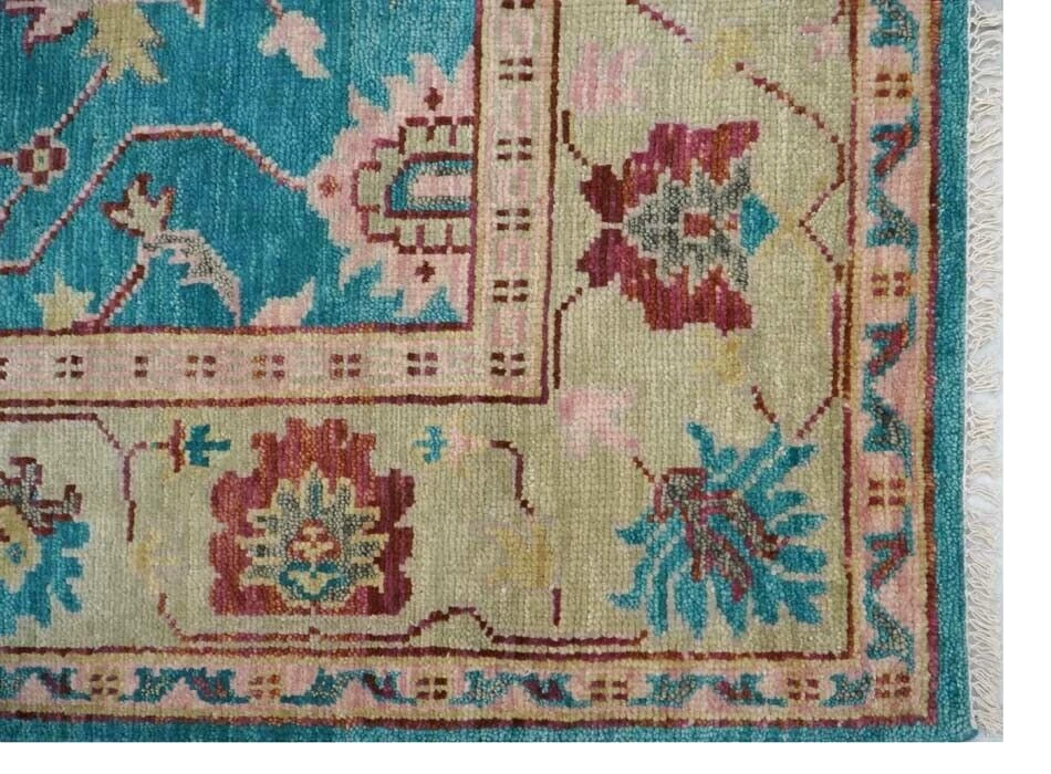 Pile Type: Cut Handmade: Yes Pile Height: Medium Item Length: 12 ft Care Instructions: Professional Cleaning Recommended Features: Allergy Friendly, Eco Friendly, Fire Resistant, Kid Friendly, Pet Friendly Regional Design: Oushak Size: 9 x 12 ft Material: 80% Wool, 20% Cotton Time Period Manufactured: 2020-Now Item Width: 9 ft Shape: Rectangle Country/Region of Manufacture: India Personalized: Yes Room: Any Room, Basement, Bathroom, Bedroom, Conservatory, Dining Room, Foyer, Garage, Guestroom, Hallway, Home Office/Study, Kitchen, Living Room, Lounge, Nursery, Trailer, Utility/Laundry Room Personalize: Yes Production Technique: Knotted Model: 1337 Pattern: Medallion Weave: Hand-Knotted Type: Area Rug Style: Traditional Original/Reproduction: Original Department: Kids, Teens, Adults Brand: Bloomrugs Color: Teal