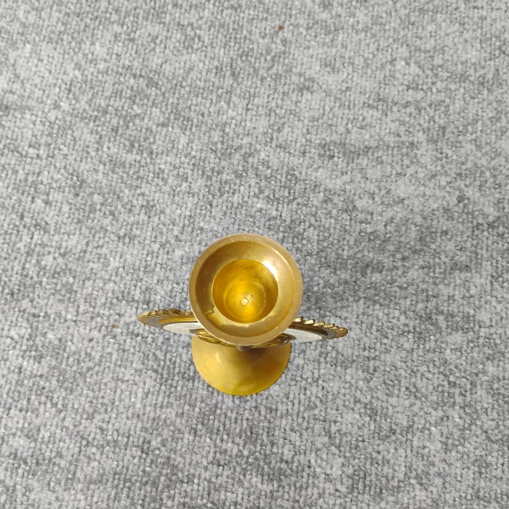 This product is a handmade vintage Mother of Pearl brass candlestick holder from the 1950s. It features an antique brass finish and a unique design. The combination of the intricate craftsmanship, the gold color, and the vintage appeal make this candle holder a standout decorative piece for any home.
