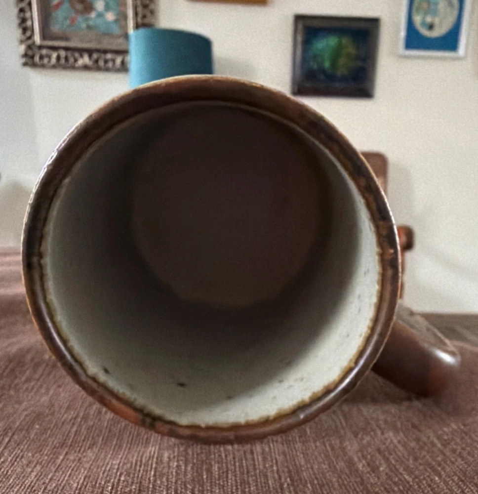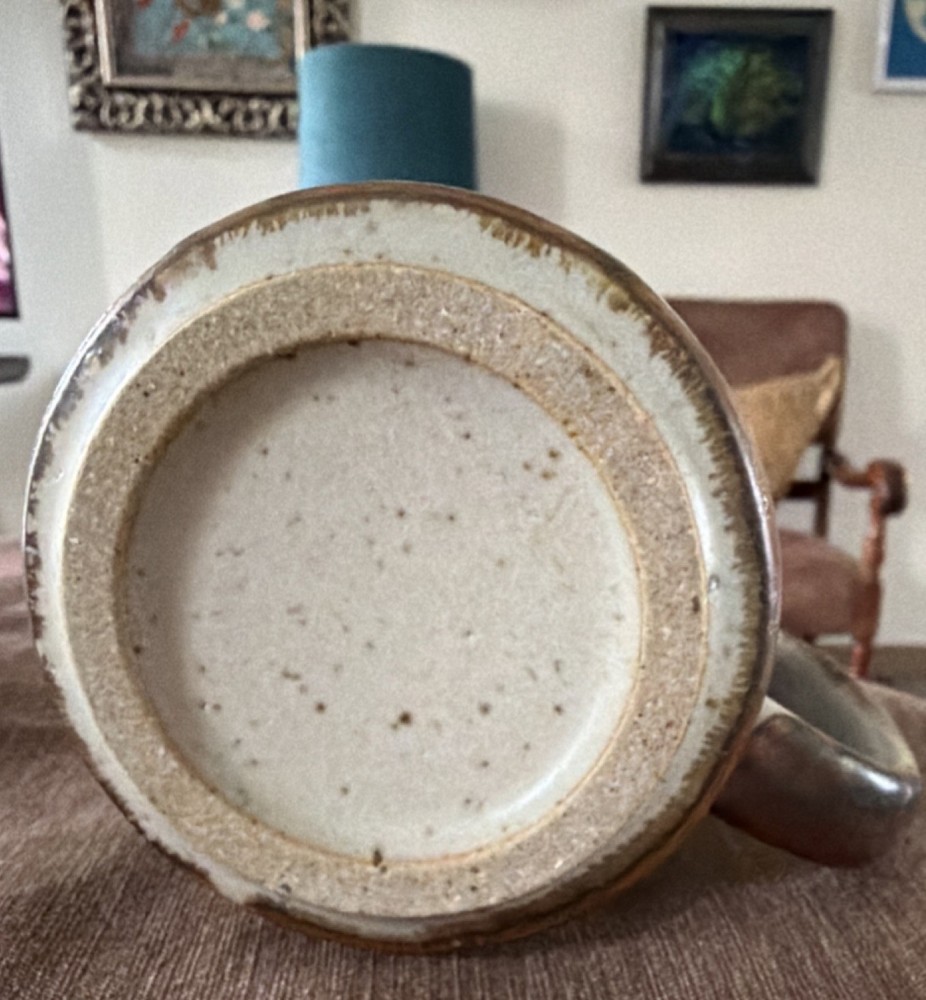 Finish: Matte Type: Coffee Mug Color: Beige, Brown, Blue Department: Unisex Adults Shape: Round Brand: Otagiri Pattern: Horizon Style: Mid-Century Modern Features: With Handle Material: Ceramic