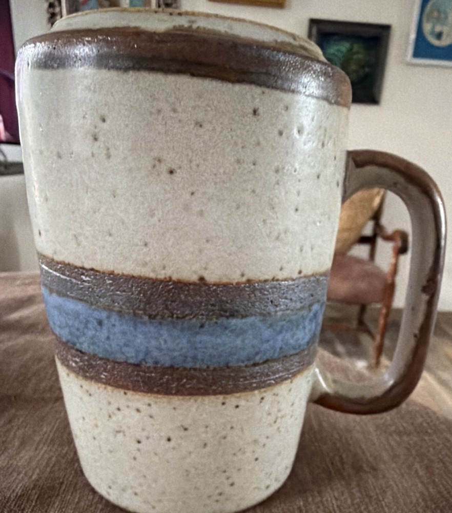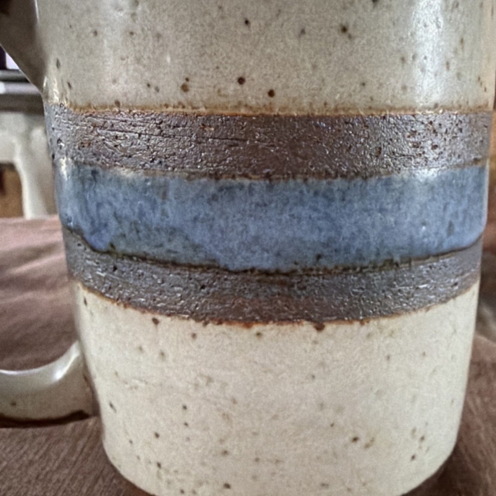 Handmade Vintage Otagiri pottery Mug Horizon Pattern Gorgeous Blue w speckles