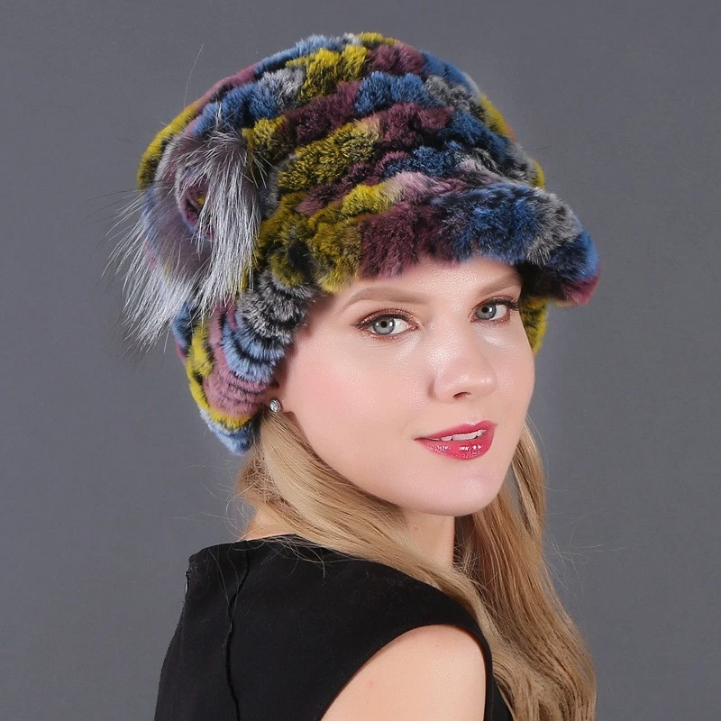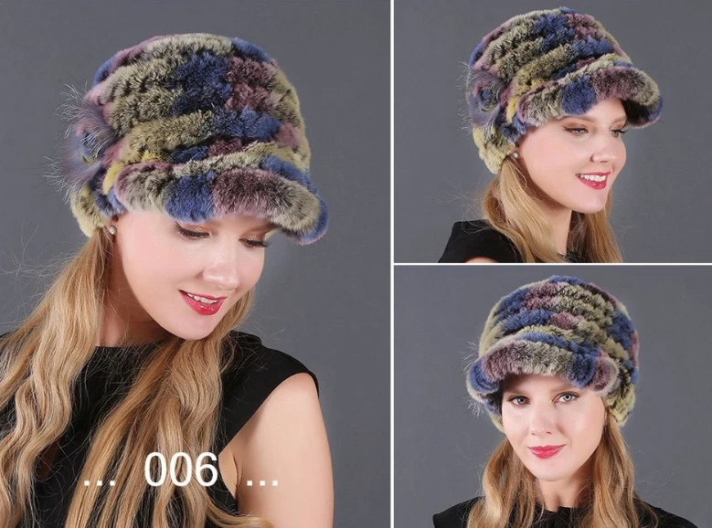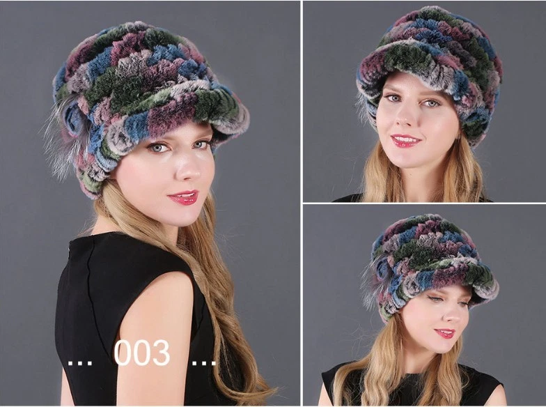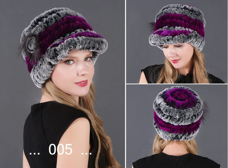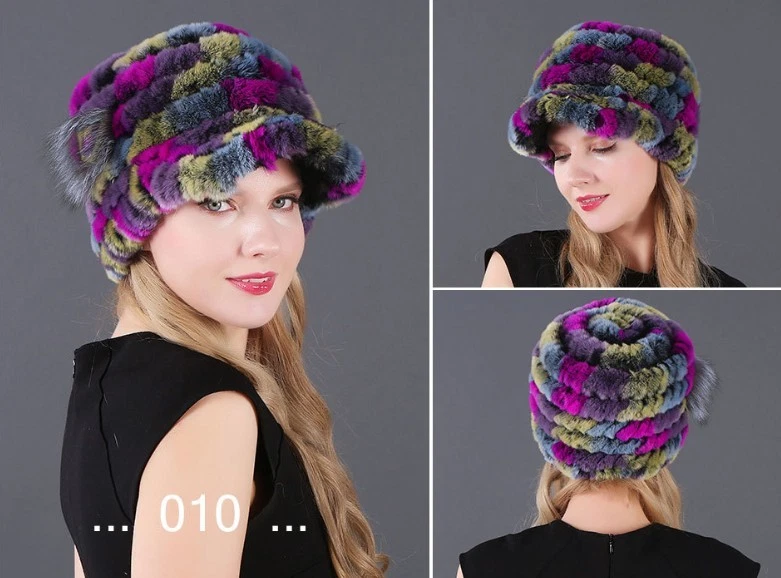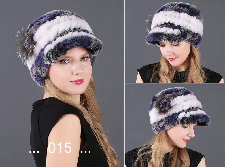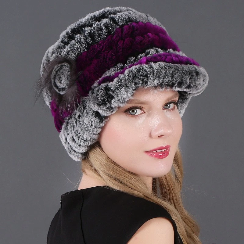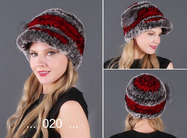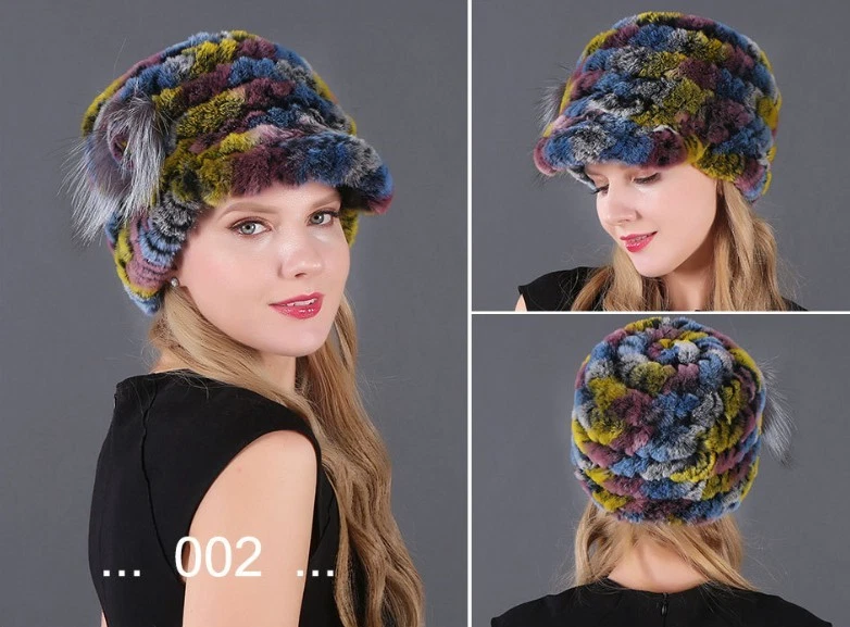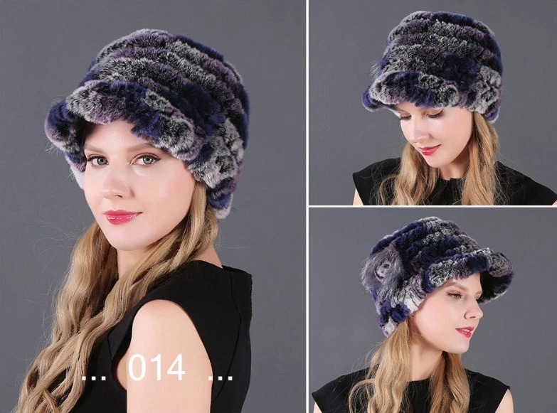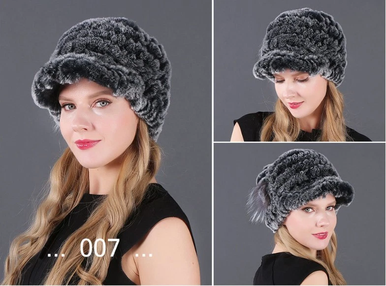 Handmade Women's Real Rex Rabbit Fur Winter Keep Warm Knit Hat