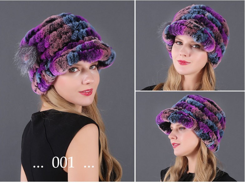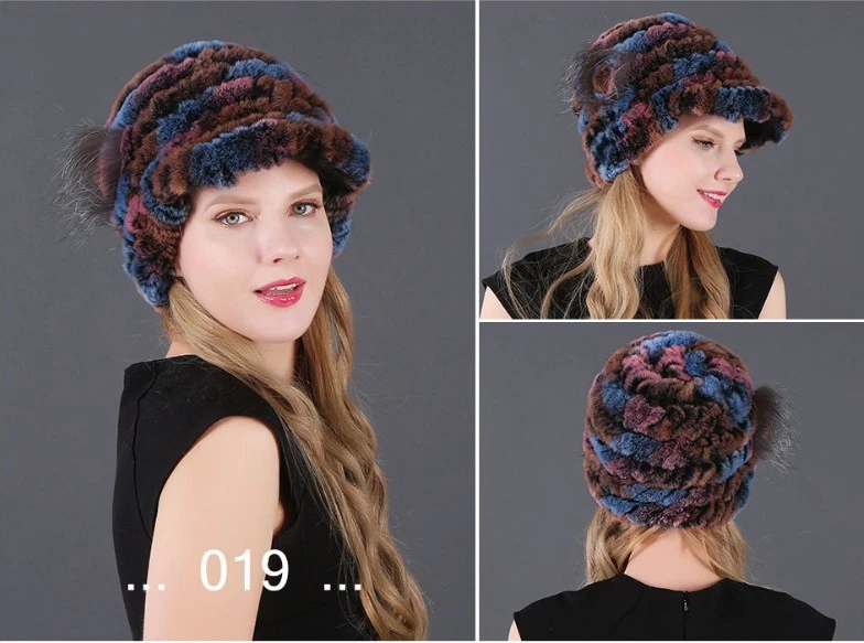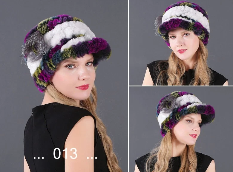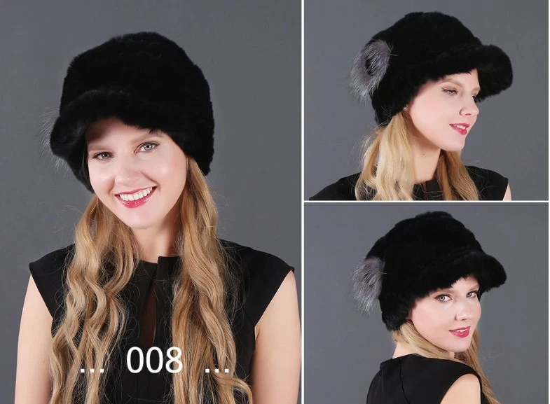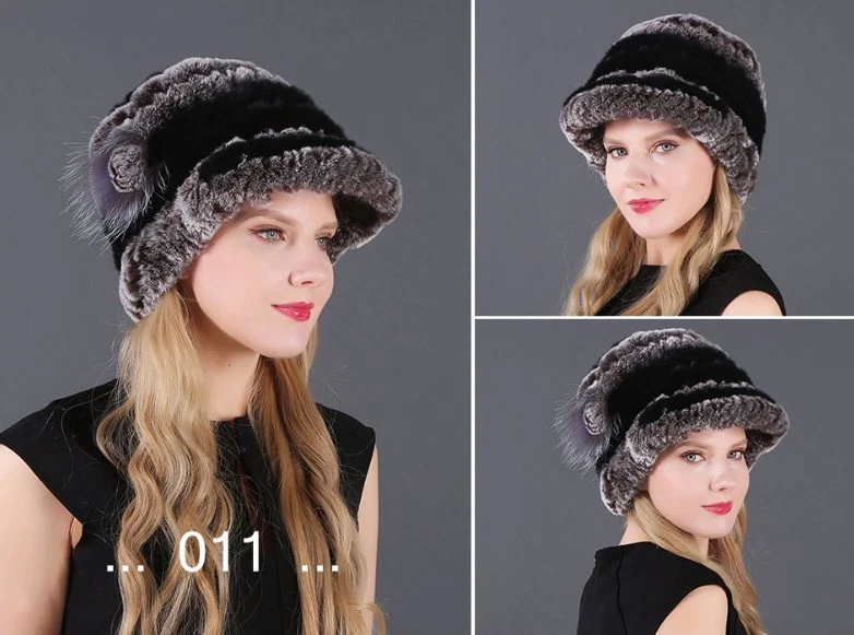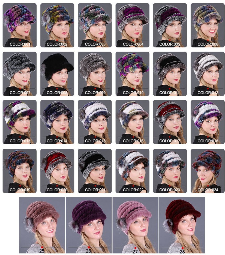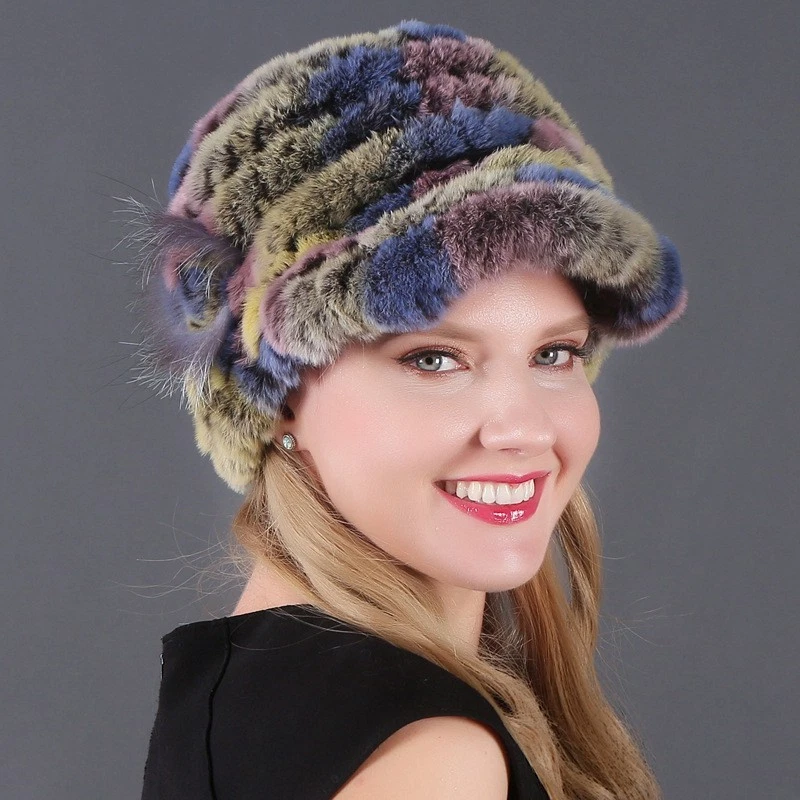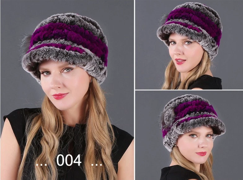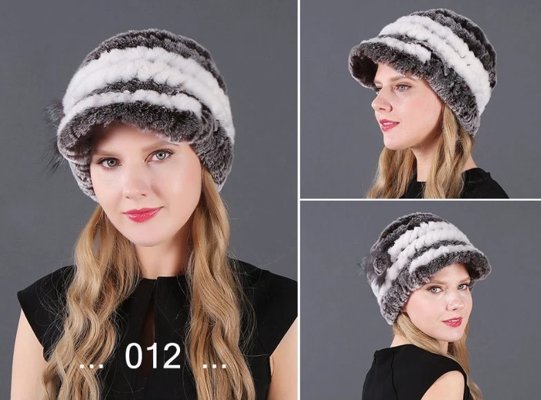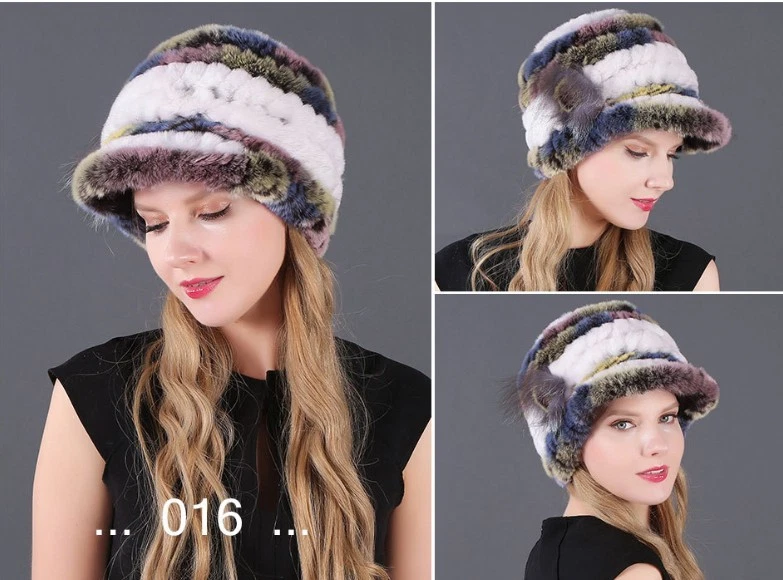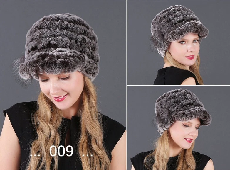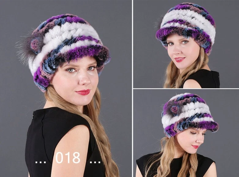 Handmade Women's Real Rex Rabbit Fur Winter Keep Warm Knit Hat