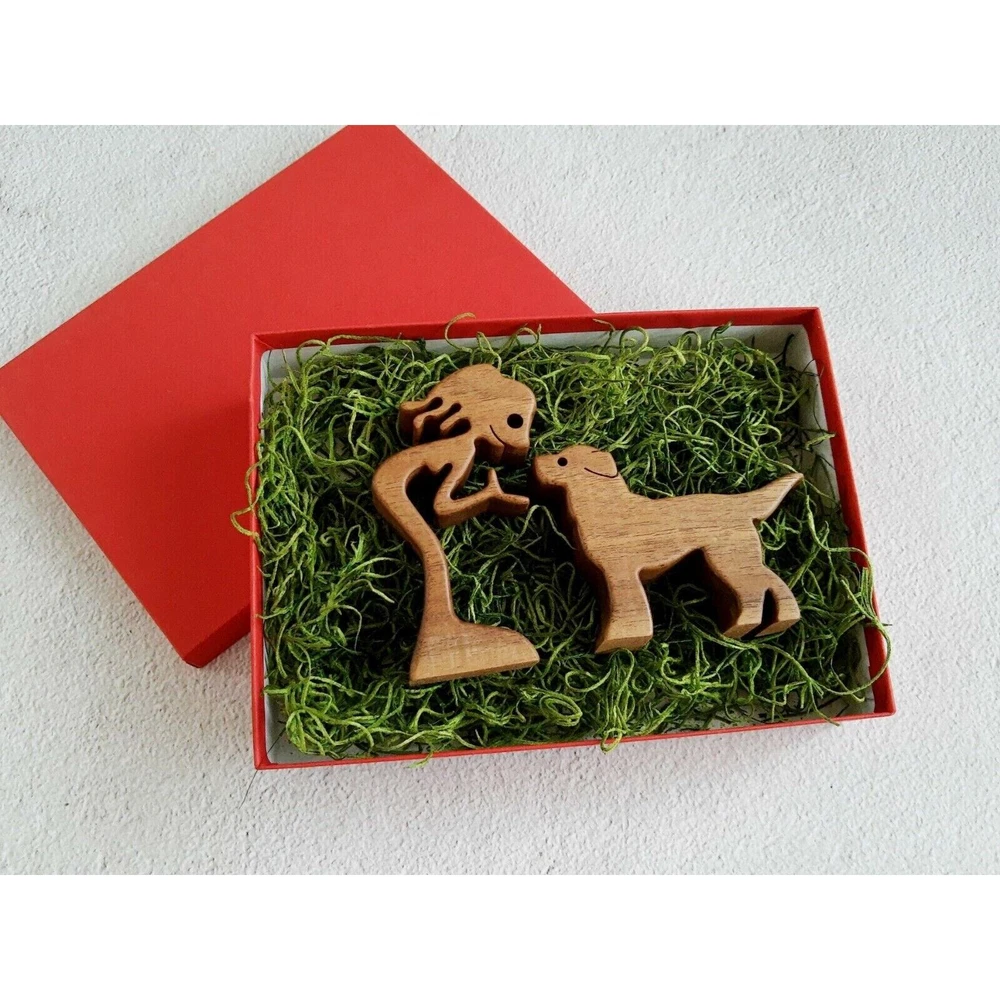 Handmade Wooden Figurine Girl and Labrador Walnut Wood Unique Home Decor Look at this couple! I'm sure they bring their owners happiness and pure love! Great present for Labrador, Retriever and just dogs lovers, friends, mom and dad... It's just great present! The figure is made of walnut wood, processed with special orange oil and wax. Ideally smooth surface, without hooking. High - 5" (12 cm) Width - 3.5" (9 cm) This figurine will be the only one, because we never use the same kind of tree sample. And for sure nature never will make the same pieces like snowflakes. We only looking for perfect peace of wood for THAT ONE!