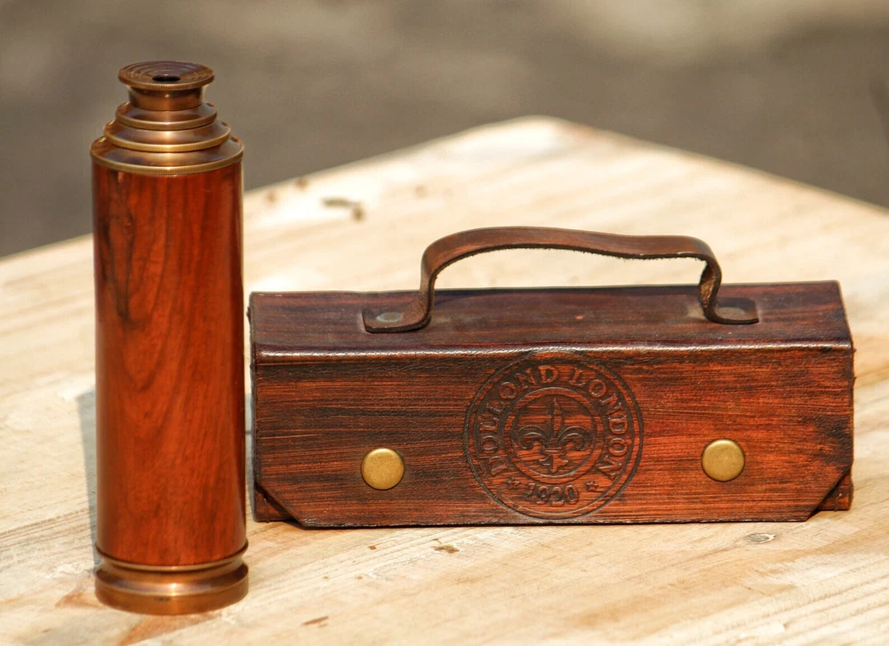 Handmade Working Telescope Custom Engraved, Pirates Spyglass, Gift For Husband, Anniversary Gift, Boating Gift, Gift For Him Materials: Brass, Glass, Wood, Leather DESCRIPTION OF PRODUCT These Beautifully Crafted, Handmade, Solid Brass Telescope have been Manufactured to Reflect the Workmanship and Materials of a more Elegant Bygone age. All feature high Quality fully Coated Optics Making them Highly Functional Products. All Models Provide Correct images, So can be Used for Terrestrial viewing Because It Focuses and Magnifies due to the Excellent Optics for real Viewing. A Premium Quality Brass Wooden Telescope With Leather Box, Royal Navy Spyglass, Handheld Telescope, Pirate Scope, Boating Gift, Graduation Gifts, Gift For Him. It Comes With Leather Case , Plain Wooden Box , Engraved Wooden Box. You Can Chose Case Options From List while Making Order. Size Of Telescope - 15 Inch [ 38 Cm] Full Extend ! 6 inch [ 15.24 Cm] When Folded Material - Brass, Leather, Wood Finish- Premium Brown Antique Finish Put Your Engraving Instruction In Box, Telescope Can be Engraved 4 Side Because 1 Side Is On Wooden Part, Each Side Can Have 200 Characters Or 2 to 3 Lines . Wooden box can also be engraved Up to 400 Characters Or more