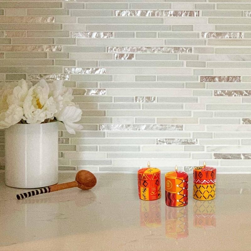 Handpainted by artisans in South Africa, these stunning candles feature a vibrant red and orange Zahabu design. Available in a package of three, these candles make a stunning and bold addition to your home decor. These candles make a great gift and come packaged in a recycled cardboard box.Details:Handmade in South Africa3 wax candlesUnscented17 hour burn timeRed and orangeRecycled cardboard packaging2.5 inches high x 1.75 inches wide x 1.75 inches deepStory Behind the Art:Handmade by a South African Fair Trade company that creates high quality hand-painted candles, ceramics and handcrafted greeting cards with the utmost attention to detail using mainly African inspired designs. Their mission is, in a region with high unemployment, to alleviate poverty, not only through development of Free Shipping Over $49.99* Details Handmade Zahabu Votive Candles, Set of 3 (South Africa) Product Description: Handpainted by artisans in South Africa, these stunning candles feature a vibrant red and orange Zahabu design. Available in a package of three, these candles make a stunning and bold addition to your home decor. These candles make a great gift and come packaged in a recycled cardboard box. Details: Handmade in South Africa 3 wax candles Unscented 17 hour burn time Red and orange Recycled cardboard packaging 2.5 inches high x 1.75 inches wide x 1.75 inches deep Story Behind the Art: Handmade by a South African Fair Trade company that creates high quality hand-painted candles, ceramics and handcrafted greeting cards with the utmost attention to detail using mainly African inspired designs. Their mission is, in a region with high unemployment, to alleviate poverty, not only through development of industry but to be socially, ethically, and sustainably responsible. What is Worldstock? The handcrafted touch of artisan skill creates variations in color, size and design. If buying two of the same item, slight differences should be expected. NoteColor discrepancies may occur between this product and your computer screen. Imported