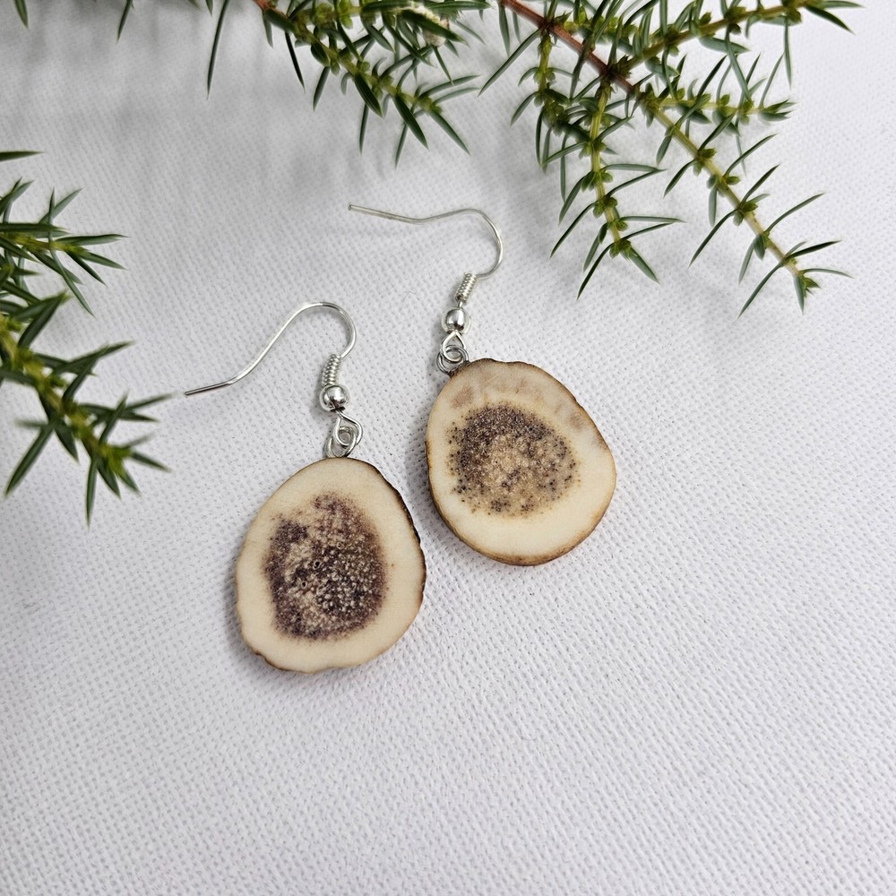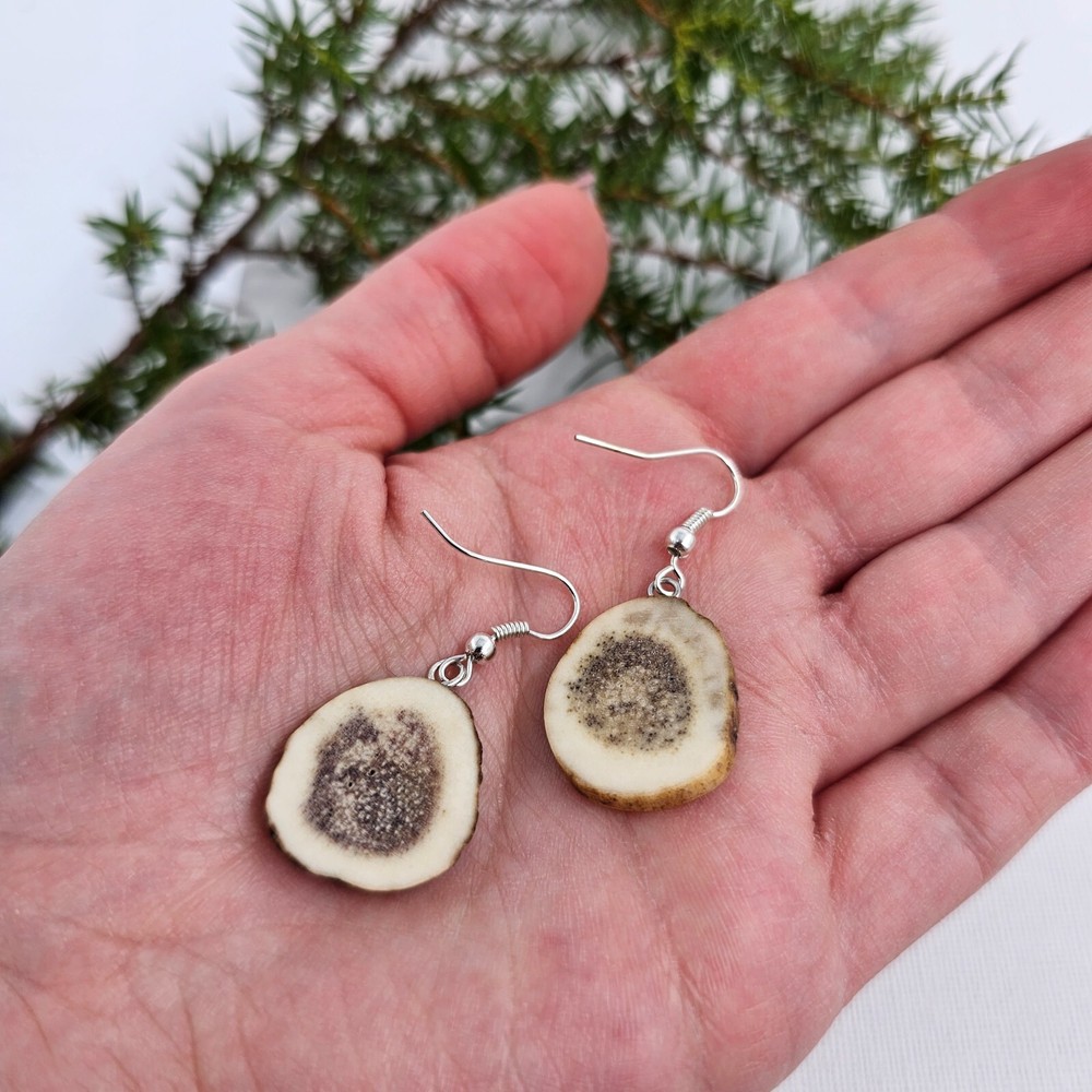 Deer antlers provide not only an aesthetic but also a symbolic accent, symbolizing strength and connection with nature. Stylishly combined with other accessories, these earrings are perfect for both everyday and festive looks. In addition, they are an eco-friendly choice for those who value sustainability and naturalness. If you want to stand out and emphasize your uniqueness, deer antler earrings are a great choice. All products are handmade in Lithuania using real and natural deer antlers. We send the products in beautiful packaging, so they are perfect as a gift for your loved one(s). Please note: this product is handmade from natural materials, which means that each product is unique and not identical, so the size and color may differ from the ones shown in the photos. Product maintenance: avoid prolonged direct contact with water (especially water containing salt). Avoid fully submerging product in water.