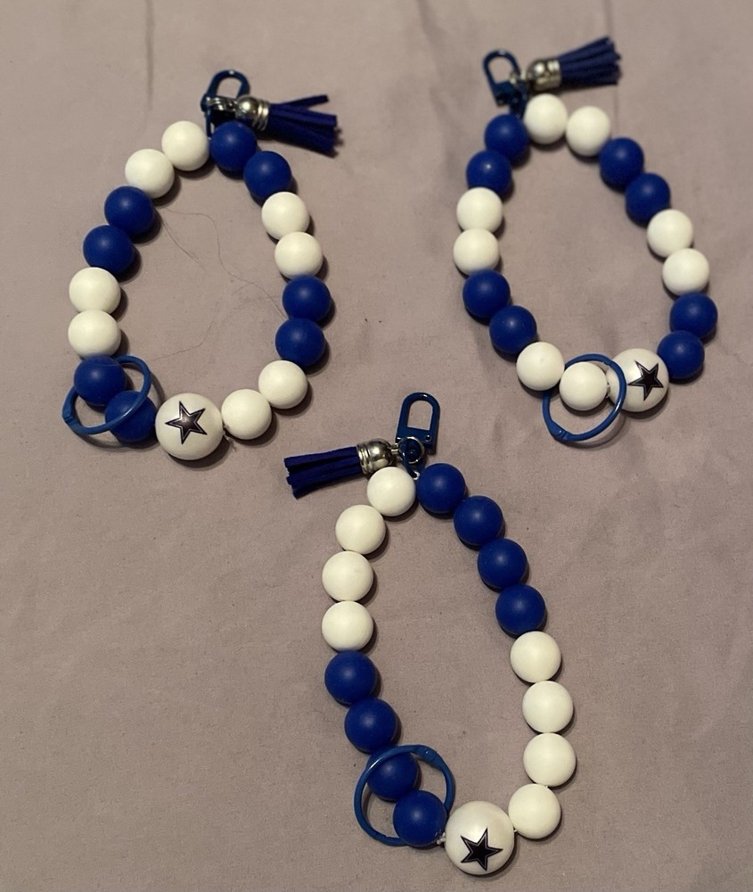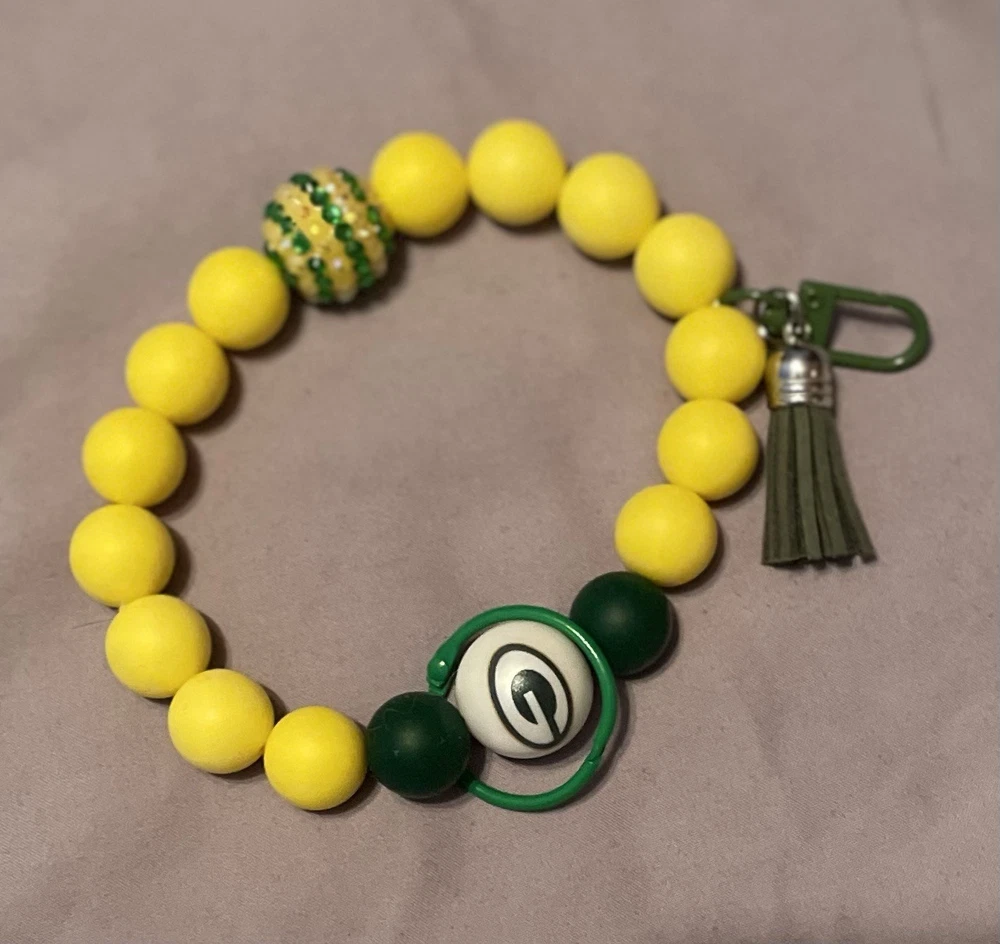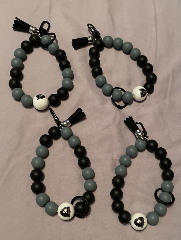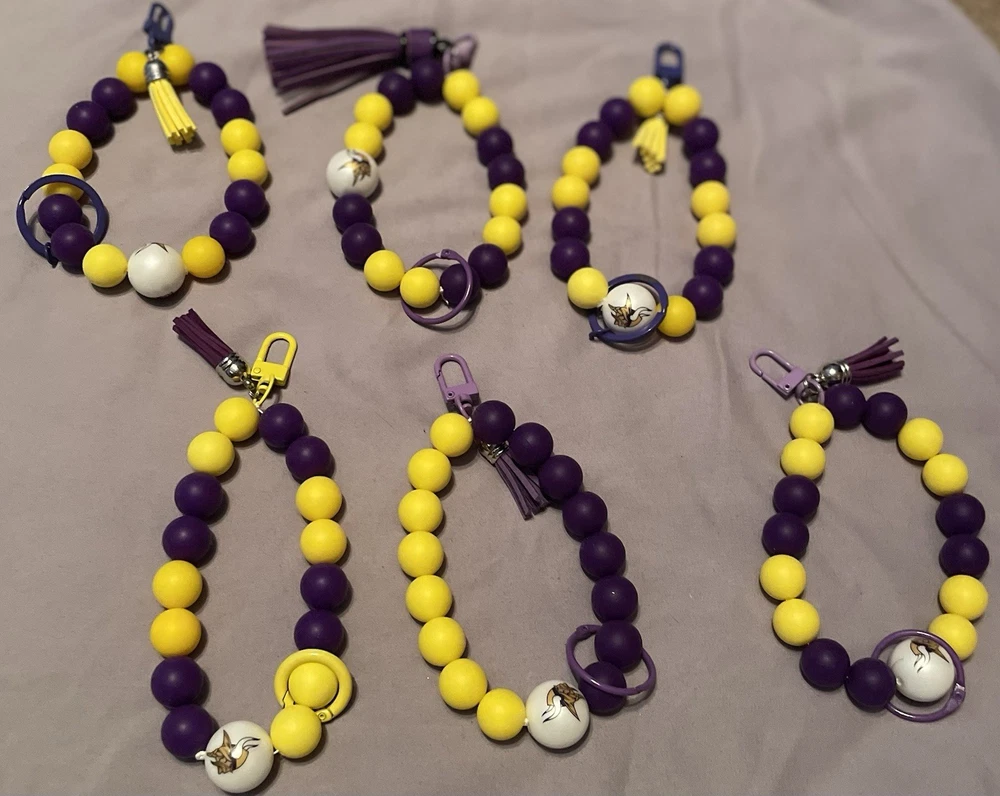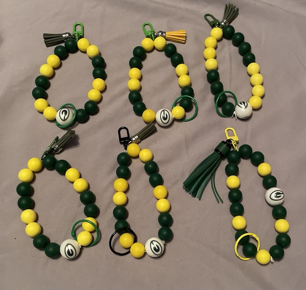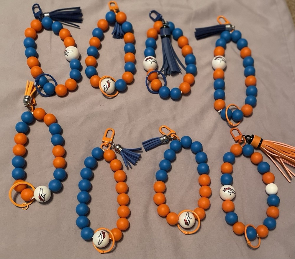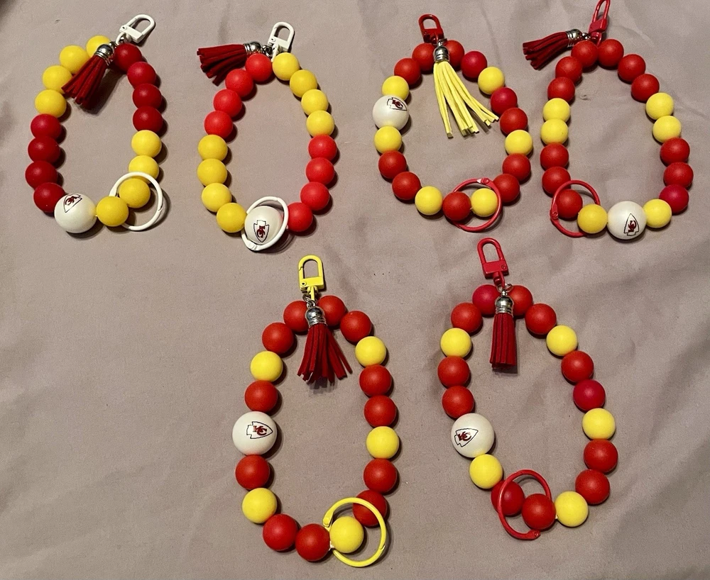 Handmade silicone NFL team and Nebraska wristlet keychain per each