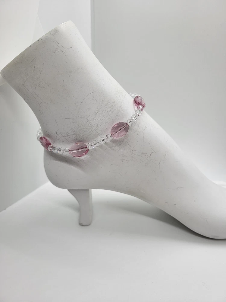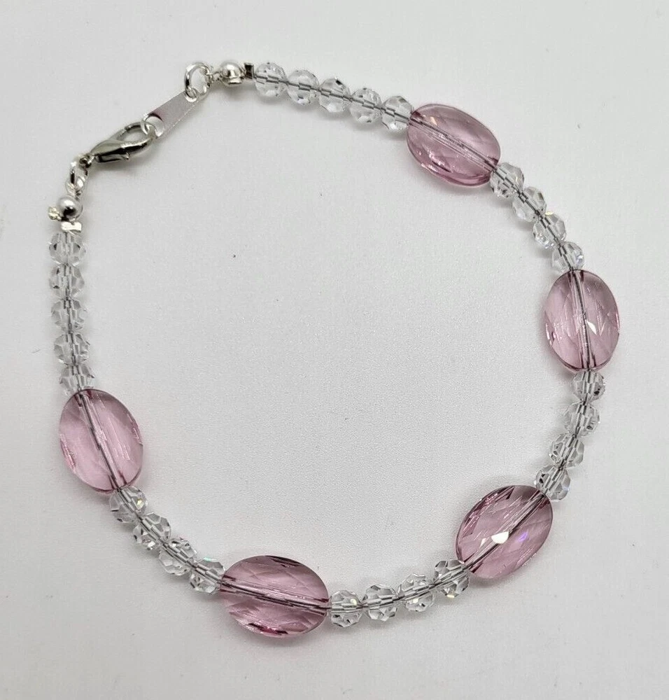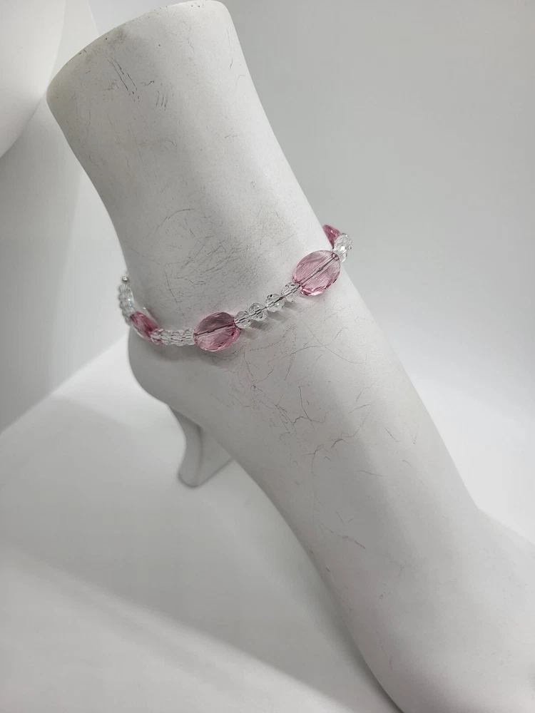 This durable handmade anklet consists of Swarovski Crystal beads strung on stainless steel wire. The lobster claw clasp is made up of steel, pewter, and silver-plated pieces. Colors: Light Rose & Clear Shape: Oval 5050 and Round 5000 Size Guideline Tiny Anklet 8" Sm Anklet 9" Med Anklet 10" Lg Anklet 11" (I have seen small children use this as a necklace) I make the anklets in 4 sizes; if you are an "in-between" (ex. 9 1/2") size let me know, and I will make it to that exact size. I love doing custom orders, so feel free to request your own combination of colors. If at any time the anklet breaks for any reason or needs a sizing adjustment, send it back to me at any time and I will fix/alter it. All you pay is shipping. I take very much pride in making my jewelry sturdy and durable. **Combined Shipping w/ multiple items: $3.95 (USA Orders) ~~Shipping should automatically combine when adding items to your cart; if you get charged extra for shipping, please send me a message and I will refund you. ~~Canada - $18 Flat Rate Shipping ~~International Orders: I ship through the Ebay Global Shipping program **Special Requests ~~ Feel free to make special requests with your order; I'll do my best to accommodate. **Returns ~~I take pride in sending quality and durable items. If there is any problem/concern/question with your order, please contact me. I will do what I can to correct, compensate, or replace the item. My daughter is learning the importance working hard and saving her money. She is selling her handmade bracelets. Please consider adding one to your cart with your order. Thank you! Handmade Elastic Bracelets by Cassie; Age 7 | eBay