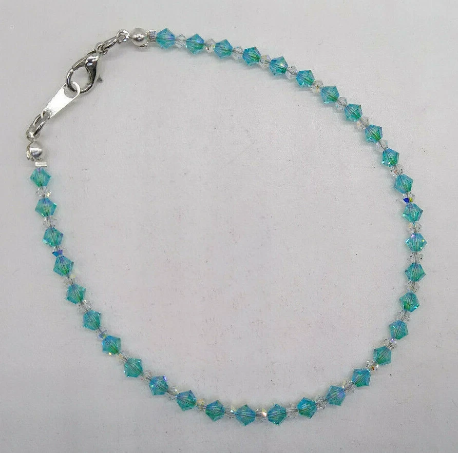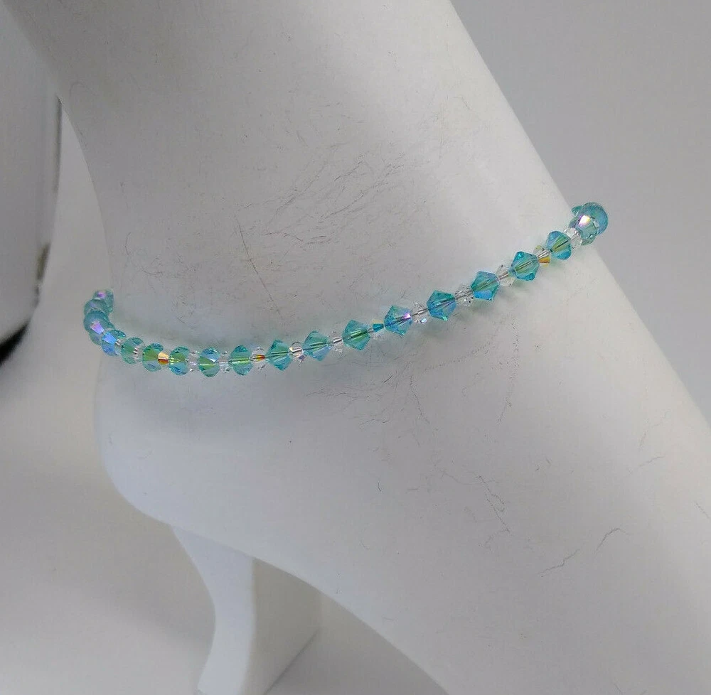 Handmade w/ Swarovski Crystal Light Turquoise Shimmer 2X Beaded Anklet Bracelet
