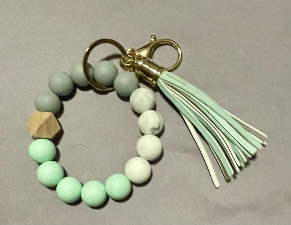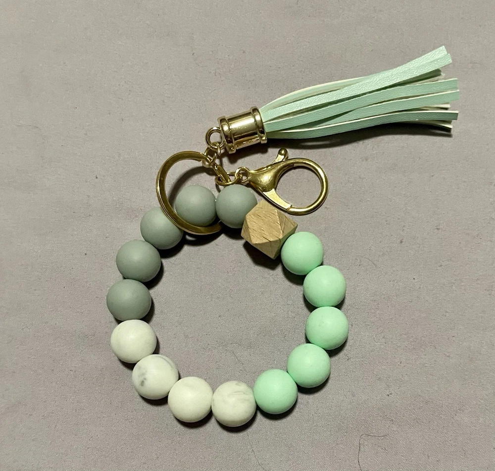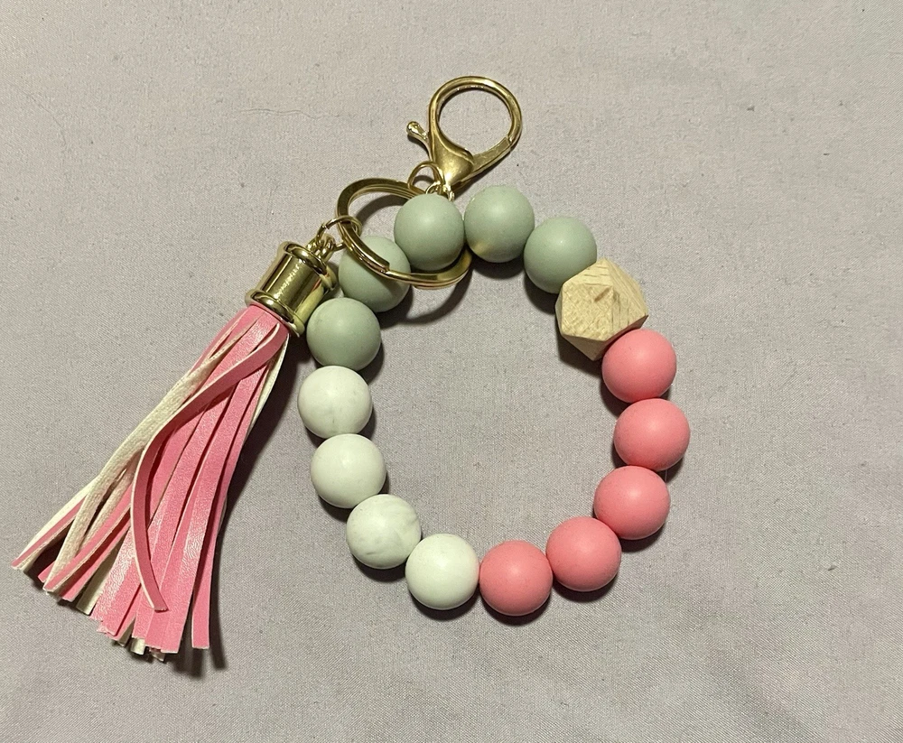 This product is a handmade wooden wristlet keychain designed specifically for women. The keychain features a multicolor design, making it a stylish and unique accessory. Made with care and attention to detail, this keychain is a perfect addition to any woman's accessories collection. Its convenient wristlet design allows for easy access to keys and adds a touch of charm to any outfit.