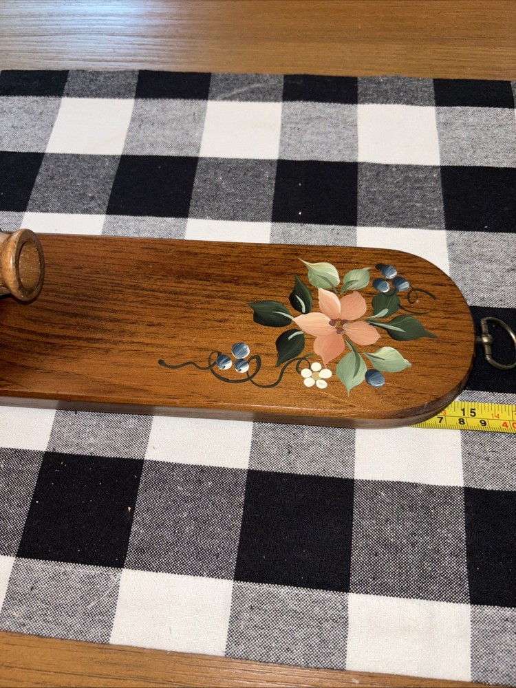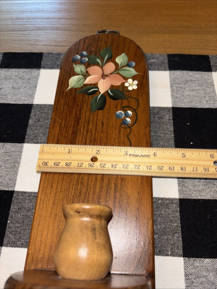 This is a single wood wall sconce with a handpainted flower and some greenery. Suitable for a taper candle with a larger bottom.