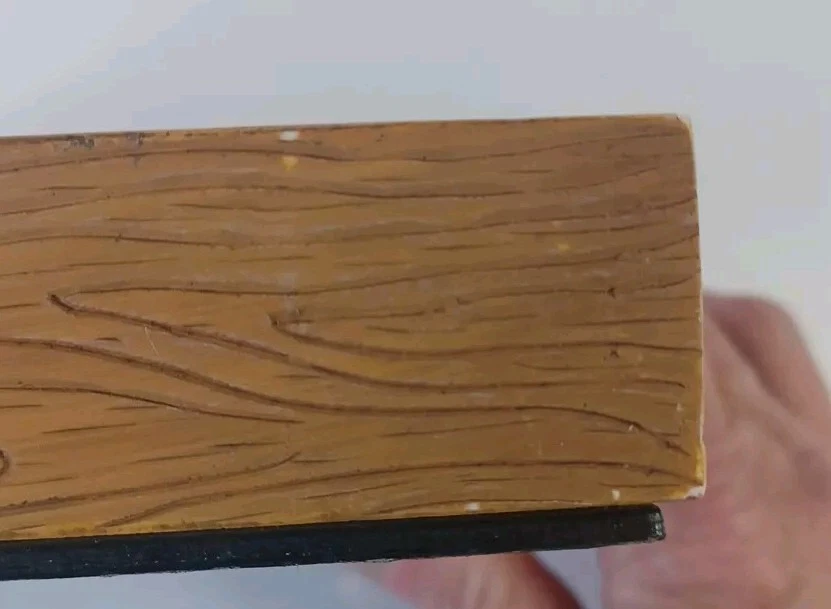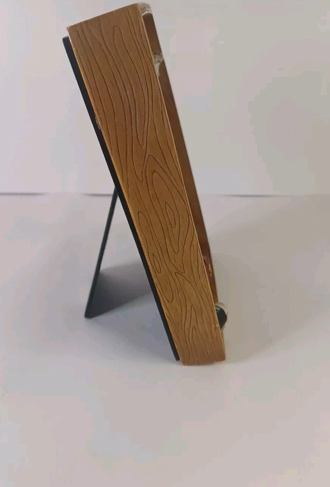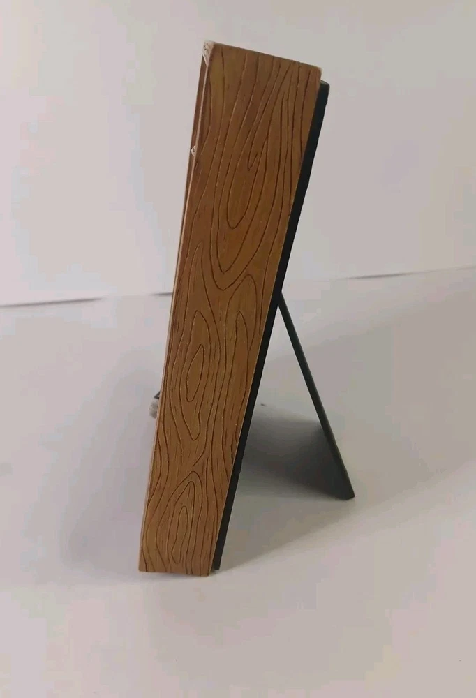 This is a handpainted wood photo frame with a 3D basketball shadowbox design. It is suitable for a 4 x 6 inch photo and has a rear-loading type of photo insertion. The frame is rectangular in shape and has a matte finish. The product is made by Russ Berrie and has a sports theme. The frame is 8 inches in height, 7 inches in width, and 6 1/8 inches in length. It is suitable for displaying a single photo and has a box frame depth of 1 inch. There is some wear on the frame as shown in photos. Sold as is