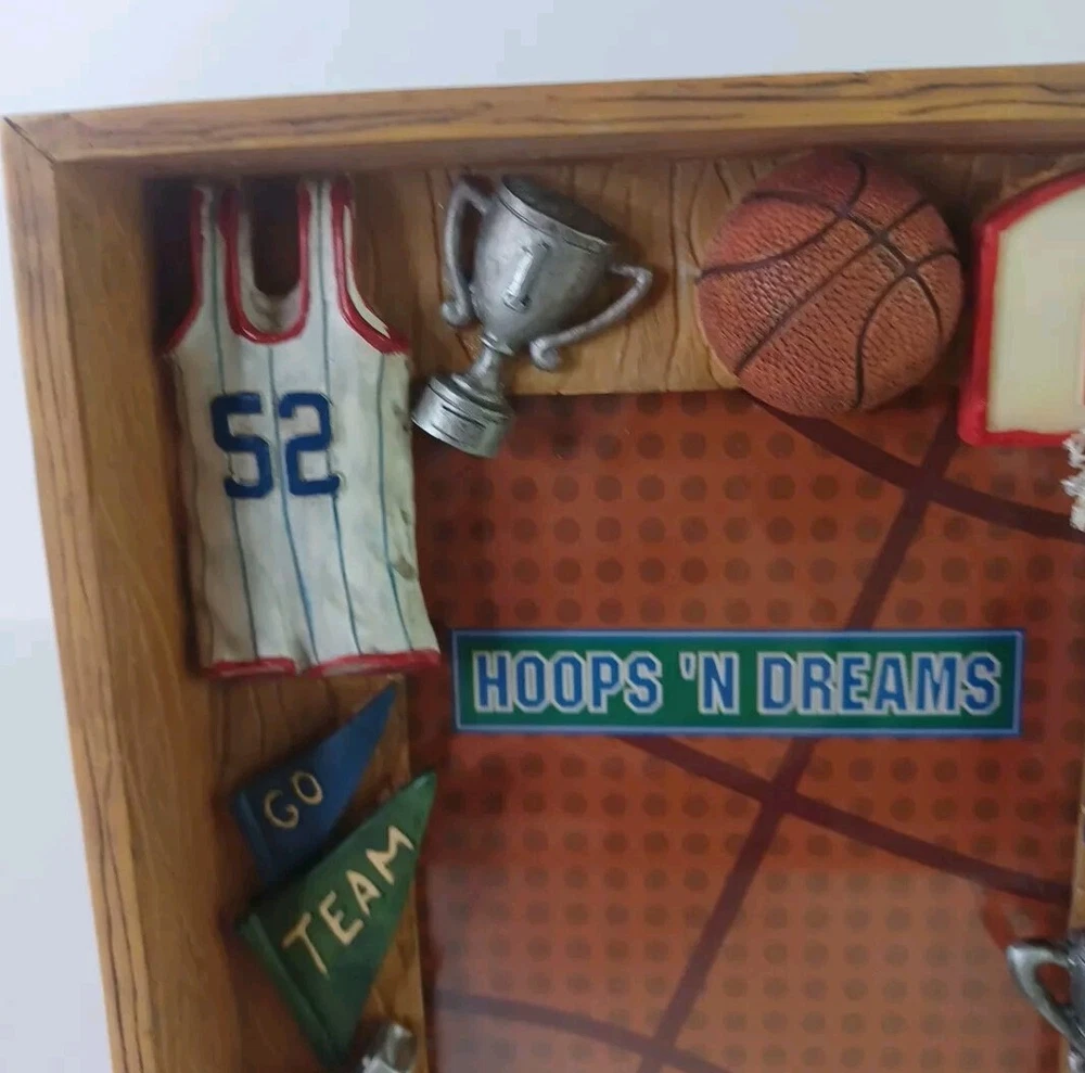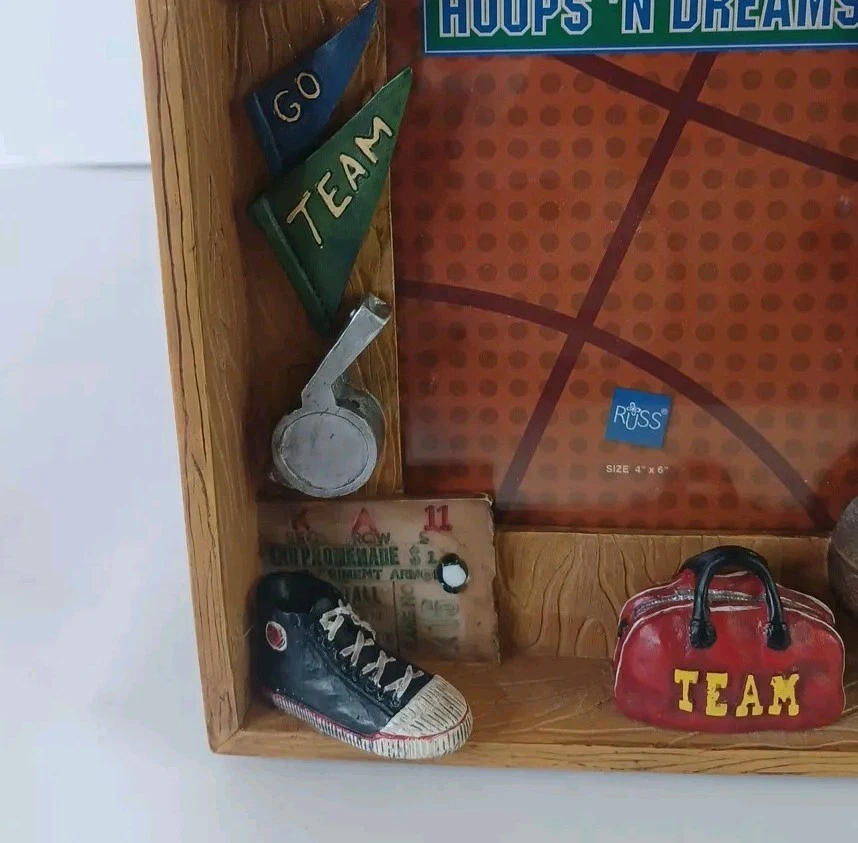 Handpainted Hoops ‘n Dreams” 3D basketball shadowbox photo frame by Russ Berrie.