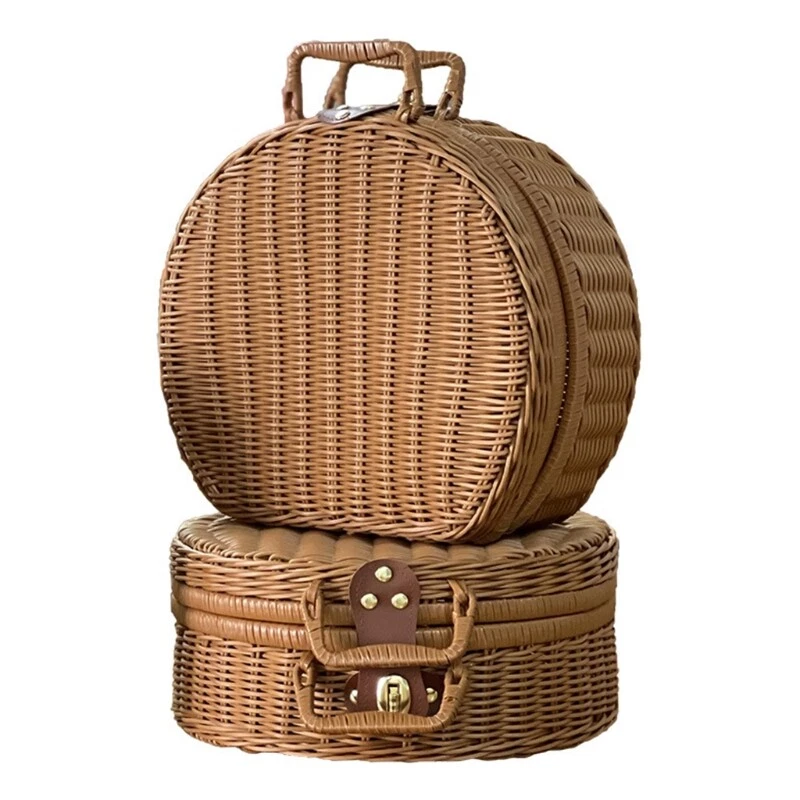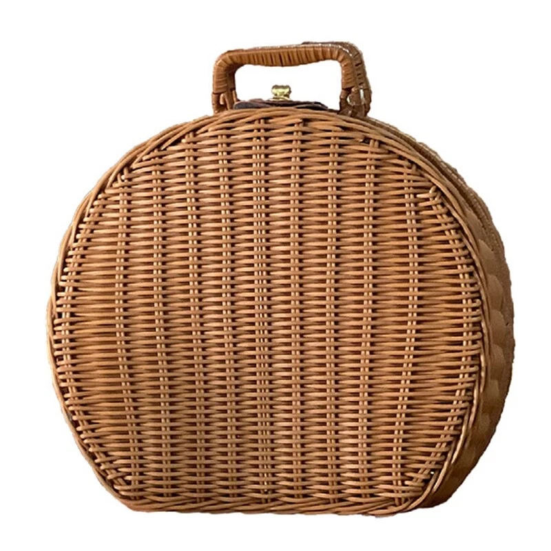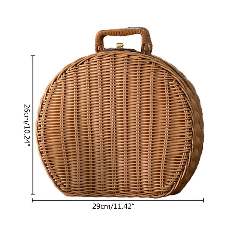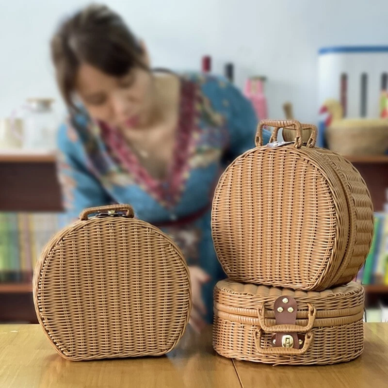 Handwoven Basket Storage Box with Handles Wicker Handbag Suitcase Vintage