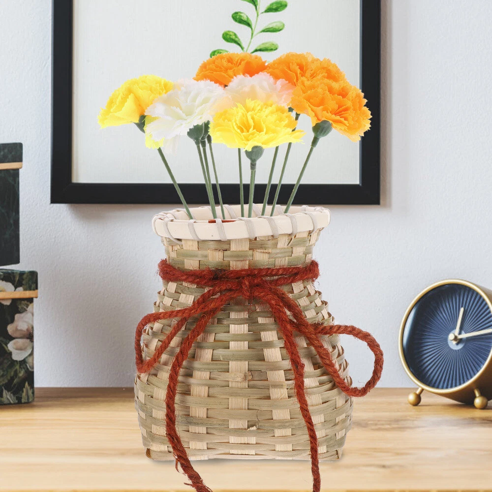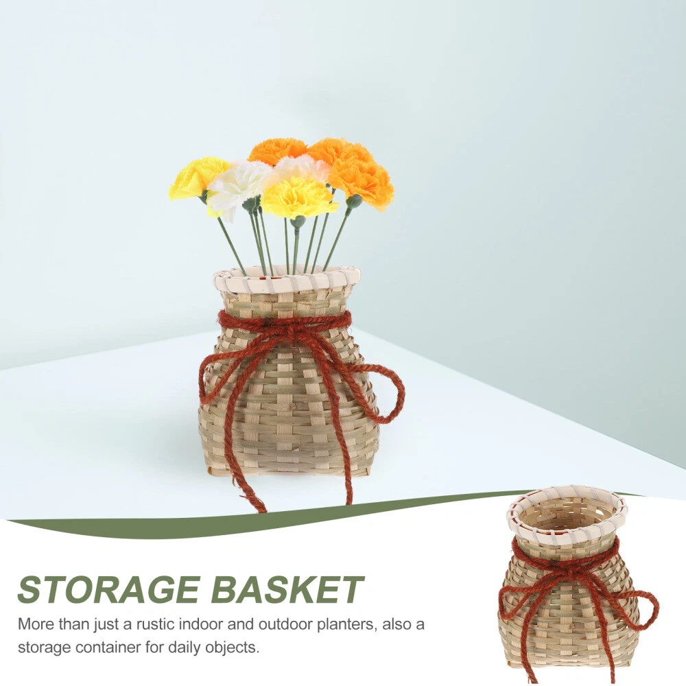 Handwoven Wicker Picnic Basket Belly Planter Straw Pot Holder
