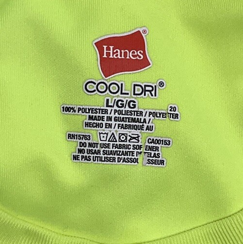 This Hanes Cool Dri T-Shirt is perfect for any man looking for a comfortable and stylish shirt. The neon yellow color adds a fun pop of color to any outfit. The long sleeves make it perfect for cooler weather, while the regular size fit ensures a comfortable and flattering look. Made by the trusted brand Hanes, this T-Shirt is sure to become a staple in any wardrobe. Whether you're looking for a casual shirt to wear out or a comfortable piece to wear in, this Hanes Cool Dri T-Shirt is the perfect choice. Chest is 40 inches.
