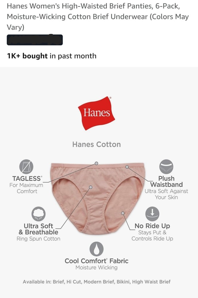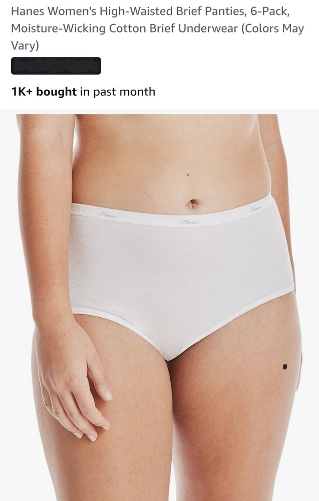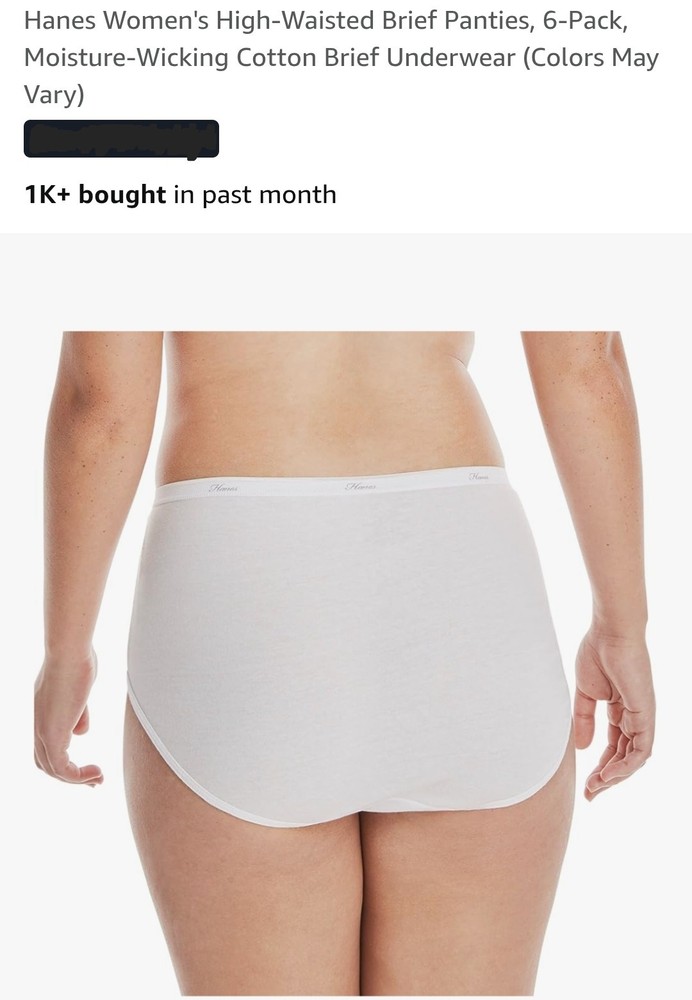 Size: 3XL Accents: Logo Color: White Department: Women Material: Cotton Style: Brief Number in Pack: 6 pack Type: Panties Compression Area: Waist Vintage: No Pattern: Solid Personalize: No Size Type: Plus Garment Care: Machine Washable Opacity: Opaque Brand: Hanes