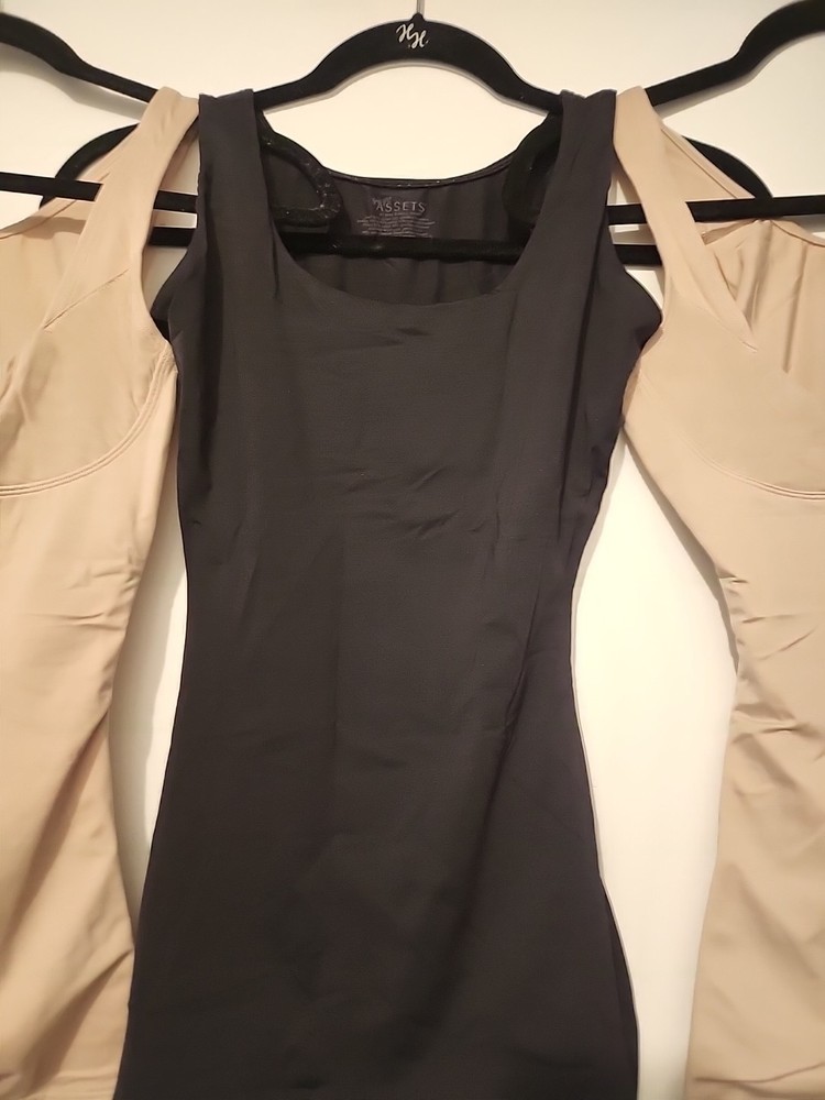 Lot of 2 Hanes women's shapewear nudes tank tops plus 1 black Assets shapewear. All 3 are size medium in good condition See pics for close up details Buyer payers shipping.