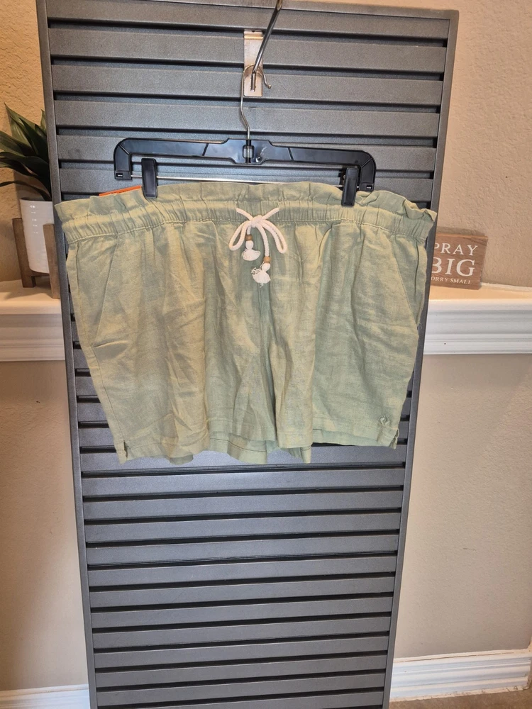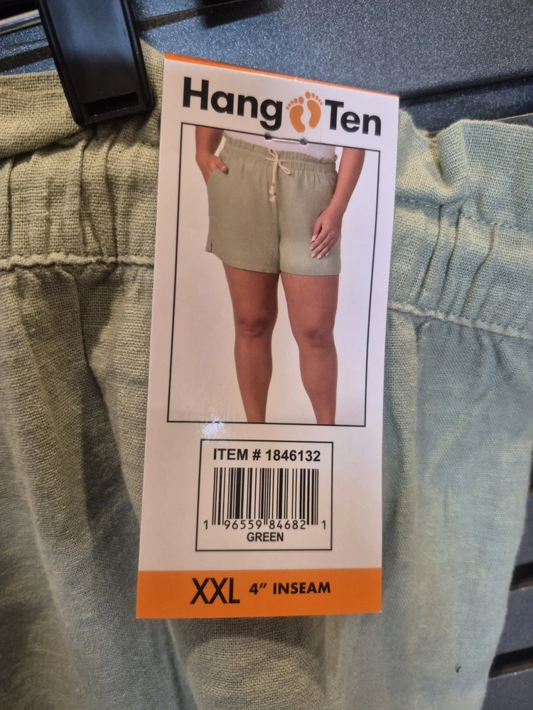 The Hang Ten Women's Linen Blend Shorts in green XXL are a stylish and comfortable option for women looking for a versatile piece to add to their wardrobe. Made from a linen blend, these shorts offer a breathable and lightweight feel, making them perfect for warm weather. The XXL size ensures a relaxed fit, while the green color adds a pop of color to any outfit. Ideal for casual days or lounging, these shorts from Hang Ten are a must-have for any woman's clothing collection.