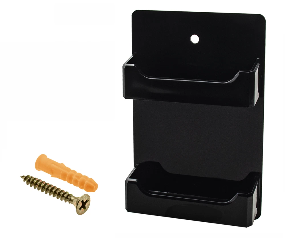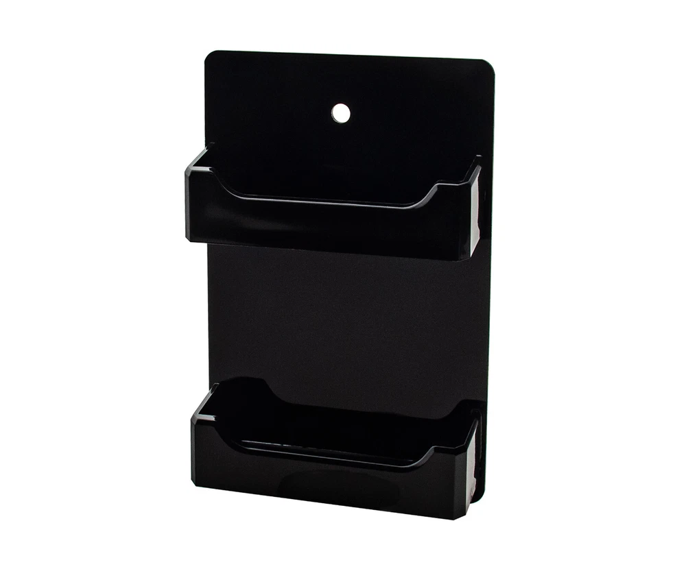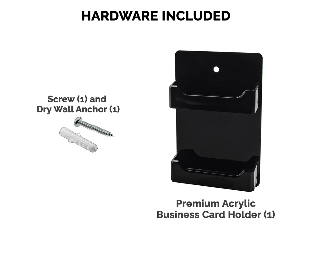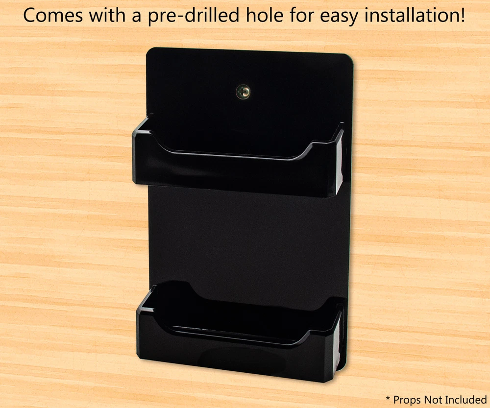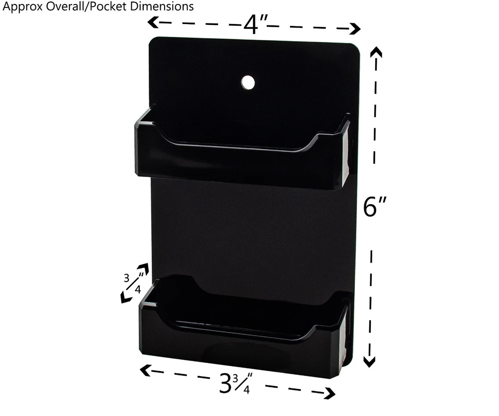 2 Pocket Gift Card Retail Holder Card Display Contact Wall Mount Product Features: Holds 3.5”W x 2”H standard sized business cards, appointment, membership, gift or rewards cards Pocket Dimensions: 3.5”W x 2"H x .75”D Overall Dimensions: 4.25"W x 4.75"H x 1"D Pocket Capacity: 50 standard business cards or 30 gift cards Perfect space saving multi pocket wall mount display holder with pre drilled holes and hanging hardware This double pocket space saving wall mount business card holder provides a sturdy display for business, gift or appointment cards that complements any decor. These multi slot card racks are great space savers and help you keep counters free and clear of clutter. Looking for a convenient way to distribute multiple sets of cards in one convenient card organizer rack? Business card holders make spreading the word on the multiple sets of cards simple and easy to access and still appear professional. Just one holder to display multiple sets of printed material and help keep the clutter to a minimum. The appointment card display rack has a design that makes it easy for clients and potential customers to take one. Each pocket can hold up to 50 standard business cards so you will not have to fill them that often. This gift card showcase display is made with acrylic plastic material and made right here in the USA. The wall card rack provides long-term durability in addition to keeping your 3.5 inch by 2 inch printed material neatly in the holder, and can be easily placed on any wall by exits or entrances. We have designed these to display several sets of business cards and can be conveniently placed on walls or anywhere you want to leave your calling cards for the taking. These card holders come pre-drilled for easy hanging and includes hardware. All sizes are approximate Under no circumstances is Marketing Holders responsible for any actions involving hanging products using self purchased or provided hardware. It is up to the purchaser to make sure they are using the hanging hardware correctly. We will also not be responsible for the product if it cracks during the hanging process or if it falls and breaks. Return Policy 30 Day Return Policy: By purchasing our product you are agreeing to our return policy, so please read! Perfect returns (NO used merchandise) on stock items are accepted within 30 days of delivery. Any visual appearance that the product is used will result in 00 refund. All returns are subject to a 20% inspection, re-boxing and restocking fee. All returns must be repacked and returned in their original packaging for protection. (MUST return on pallet if received on Pallet) Packages being returned should be insured by you for your protection No credits are issued on shipping costs. Absolutely no returns accepted on custom order displays, including orders with custom text, imprinting or graphics