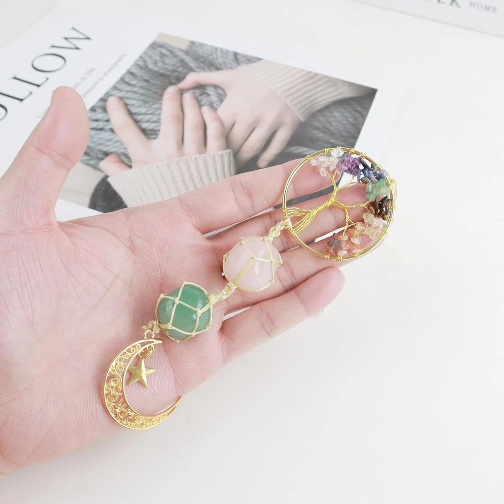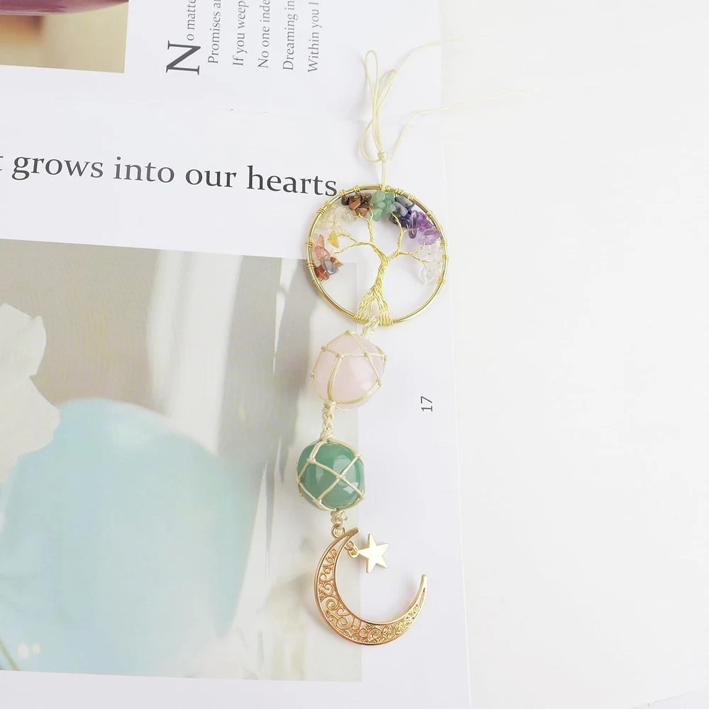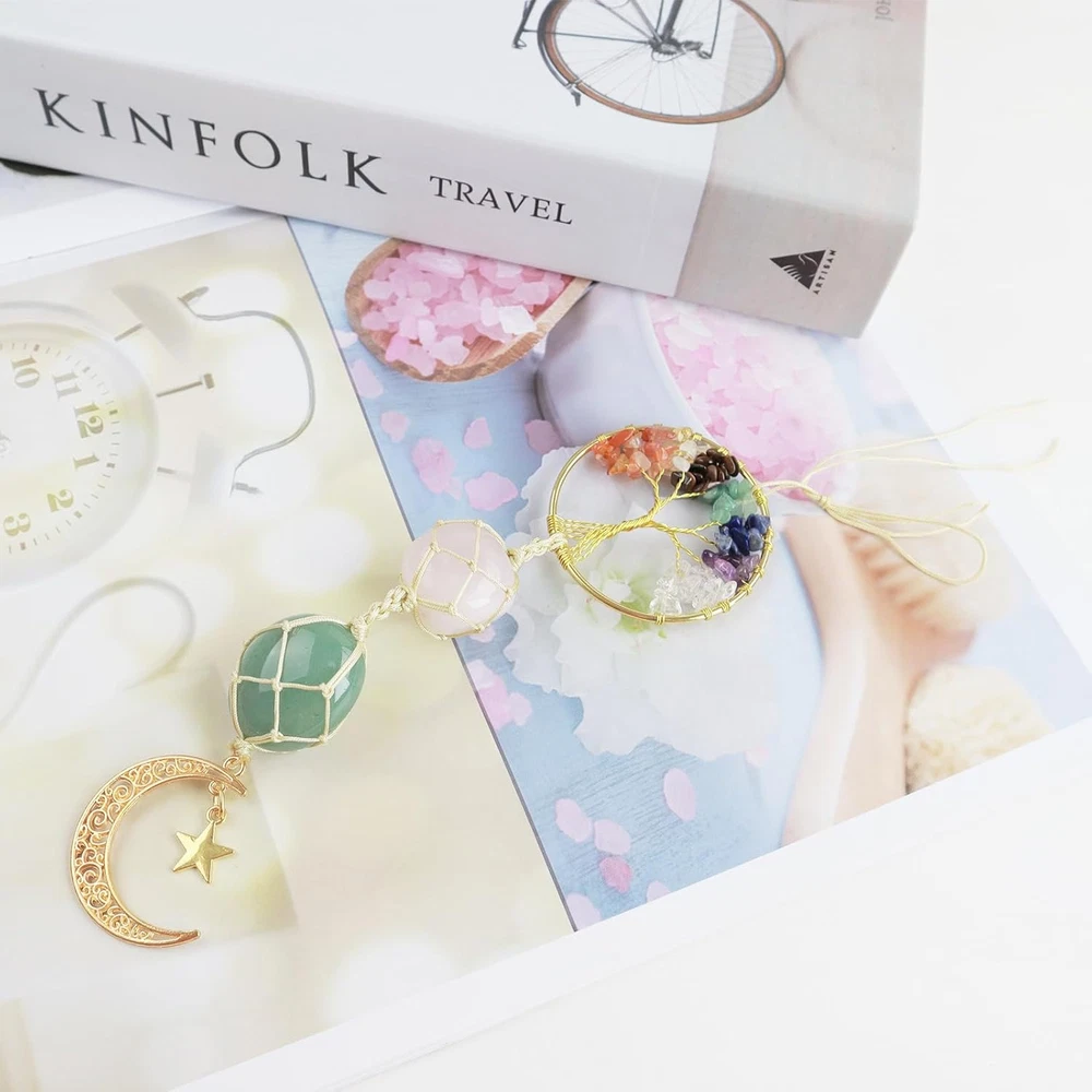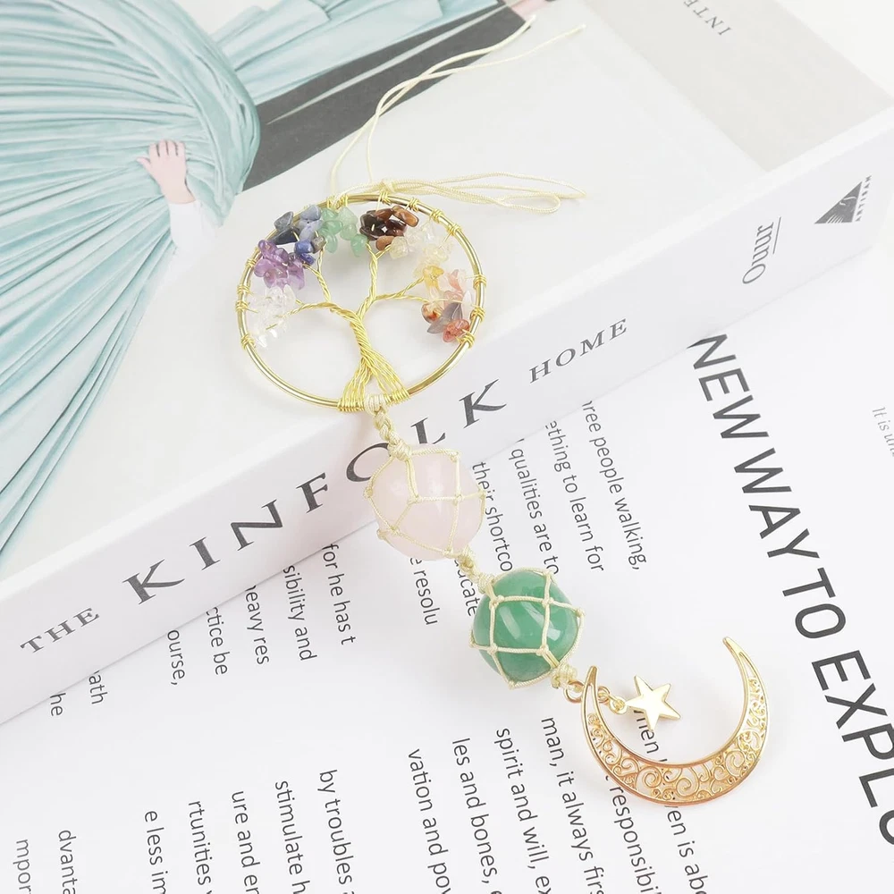 Hanging Car Ornament Natural Gemstone Healing Crystals Ornaments Moon and Star,