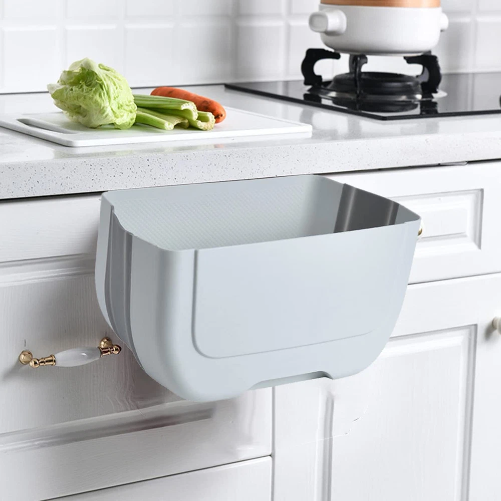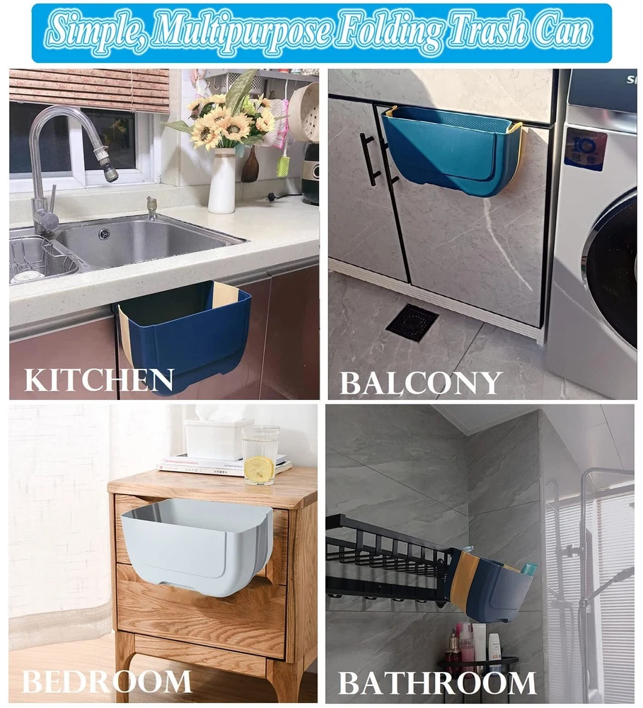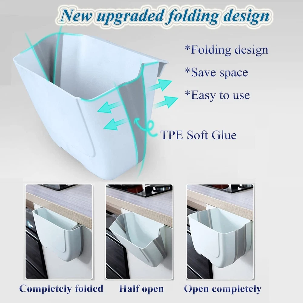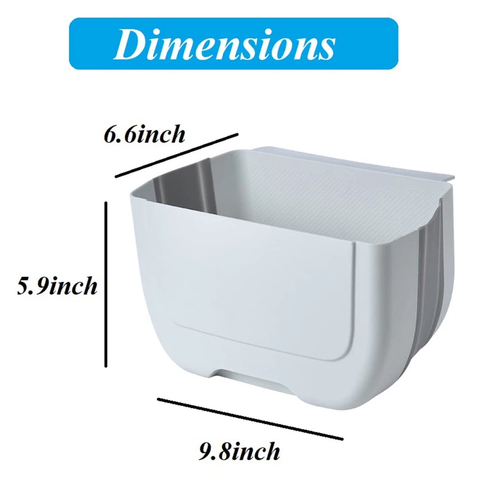 ❤【Fine Materials】: Kitchen trash can Made of sturdy plastic and silicone,safe, tasteless and durable.so collapsible and can effectively save space in your kitchen,You can use our hanging trash can for a long time.Measure 6.33x 5.11x 8.07inch. ❤【A must have for kitchen】: Easy to install, simply attach the compact folding trash can to any cabinet drawer or door. No need to constantly open and close cabinet doors with wet hands when you're cooking fresh food, slicing and dicing, compared to under-sink bins! ❤【Extremely Save Space】: Collapsible and hangable design extremely save space.When you don't use it, you can fold it. Keep your home clean and tidy.suitable for outdoor use.The thickness of the door should be less than 0.7 inches (2.cm). Please measure the thickness of the door before purchasing it. ❤【Wide Application】 : This cabinet hanging trash can be easily hung or place it directly on the ground & countertop. suitable for kitchen, bathroom, RV, laundry, etc. Space saving and environmentally friendly trash can can sit conveniently wherever you need it. ❤【After-sale 】: We promise you every quality folding trash can and friendly . If you found the product you received is defective or any problem in using, please us for a free