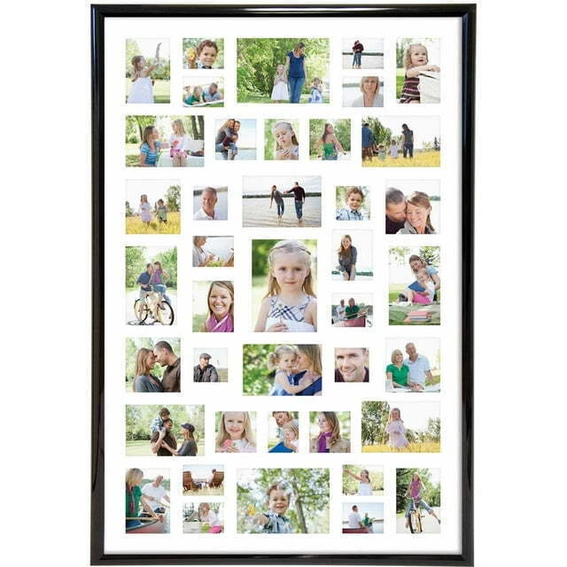 Product details The 27" x 40" Black Rounded Collage Poster Frame is an ideal way to display your treasured memories. It is suitable for posters and larger pictures. This frame also includes a 41 opening collage mat for an additional display option. This frame can be hung either horizontally or vertically. The black color finish easily coordinates with any decor style. 27x40 Rounded Collage Poster Frame, Black: Hang vertically or horizontally Styrene Front Durable plastic frame Comes ready to hang Classic rounded black profile Includes instruction sheet Fits (1) 14" x 22" poster or print On Mar 31, 2024 at 00:03:28 PDT, seller added the following information: On Nov 8, 2024 at 03:26:32 PST, seller added the following information: