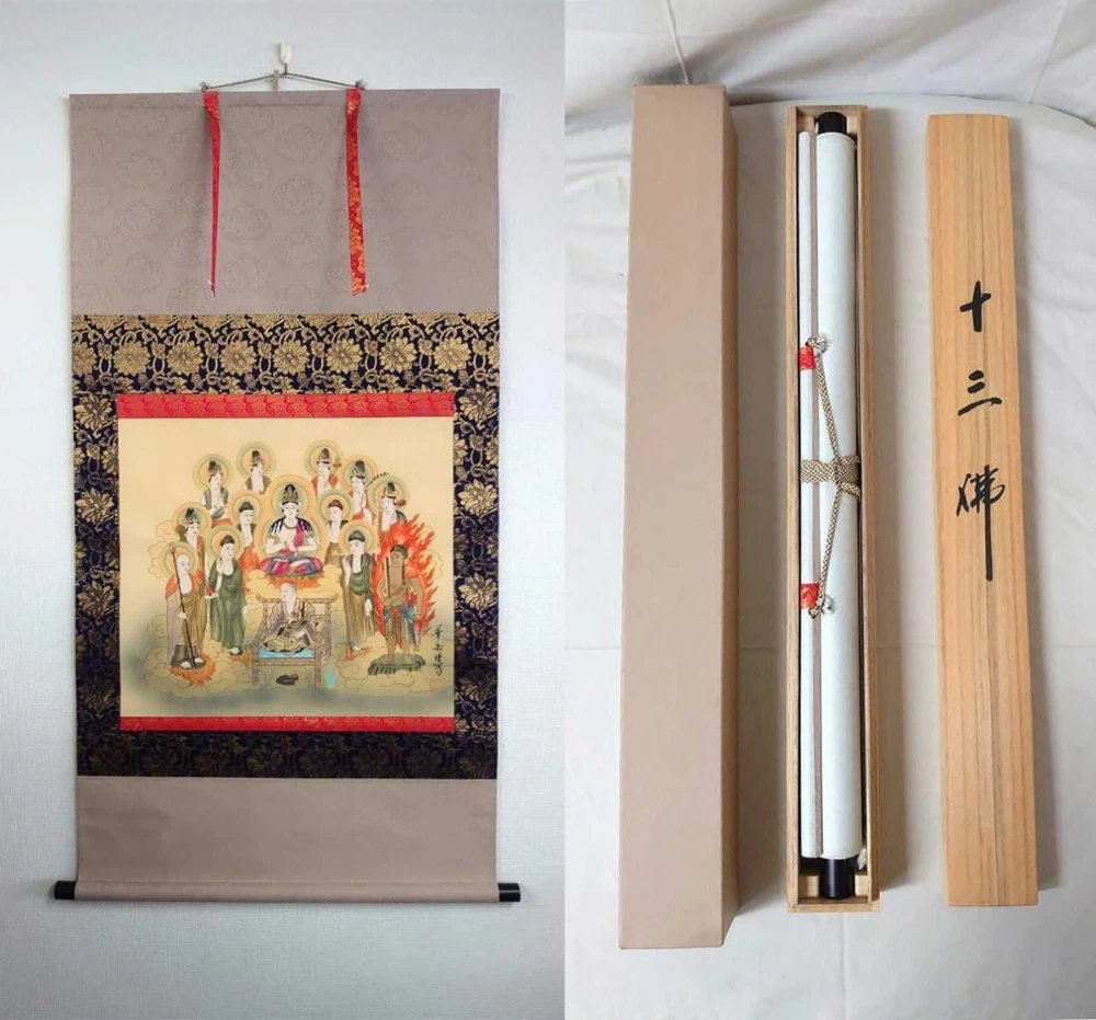 Item Title Hanging Scroll Murakami Katake 13 Buddhas Buddhist Paintings Silk With Box Good Payment Supports managed payments Please pay within 5 days after auction is finished. About Us We are located in Japan. It's our pleasure to make you happy by proposing our recommend item. If you have any questions or request about items, please feel free to ask us. International Buyers - Please Note: -Import duties, taxes, and charges are not included in the item price or shipping charges. These charges are the buyer's responsibility. -Please check with your country's customs office to determine what these additional costs will be prior to bidding/buying. -These charges are normally collected by the delivering freight (shipping) company or when you pick the item up - do not confuse them for additional shipping charges. -We do not mark merchandise values below value or mark items as - gifts - The US and International government regulations prohibit such behavior. Thank you for your understanding.