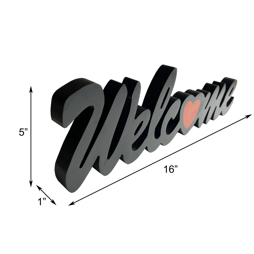 Hanging Wooden Cutout Word Welcome Sign with Heart Wall Decor Free Standing B...