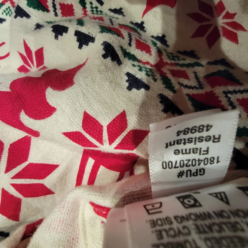 NWOT Adorable Christmas Holiday Dress and or Pajama dress- Perfect for holiday photos or holiday themed party Ruffled hem 4 snap button closure on the chest Made in Peru 62% Cotton 38% Modacrylic- nice thicker material Light beige base with red reindeer and trees. Green, blue and red Aztec print Little one decided to go with a different dress just trying to recoup what I paid for it. Fast shipper