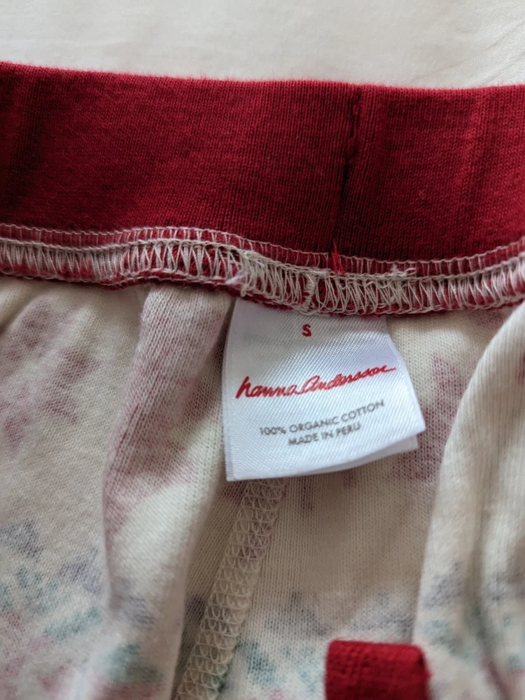 Add some cozy and festive touch to your little one's sleepwear collection with this Hanna Andersson PJ bottom. The red and ivory Fair Isle print features adorable reindeer and holiday designs that will make them excited for bedtime. Made of 100% organic cotton, these PJ bottoms are comfortable and breathable, perfect for staying cozy during the winter and fall season. The PJ bottom is machine washable and easy to care for, making it a practical choice for busy parents. Available in size S, this unisex kids' clothing is suitable for both boys and girls. Add some holiday spirit to your child's sleepwear collection with this charming Hanna Andersson PJ bottom.