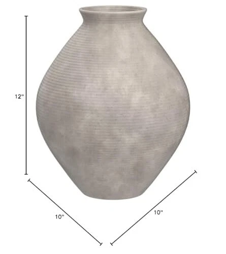 Ribbed textural rings give this vase a wonderful artisanal quality. An antiqued tan finish catches the eye, drawing attention to this elegantly fresh centerpiece. Whether you're tackling a small space or a grand room, home accents are the pieces that tie your home together. These unique details transform spaces from drab to fab in a pinch by adding pops of color and life to your canvas. From functional yet stylish vases to -of-a-kind sculptures to stunning candle holders, we have whatever you need to bring your home’s unique style to life. And we go the extra mile to package, protect and deliver your purchase in a timely manner. TEXTURED VASE: Ribbed textural rings give this vase a wonderful artisanal quality. The antiqued tan finish is elegant yet versatile, pairing well with existing living room decor BEAUTIFUL CRAFTSMANSHIP: Made of polyresin. Fill this vase with a flower arrangement and place it with candles or a sculpture to elevate your space CASUAL ELEGANCE: An antiqued tan finish catches the eye, drawing attention to this elegantly earthy piece. Its ribbed texture adds a sculptural element CHIC ACCENT: Measures 10" W x 10" D x 12" H. It's useful as a centerpiece or an everyday decoration INSTANT STYLE: Decorative vases can make great centerpieces on a coffee table or stylish accents on floating shelves