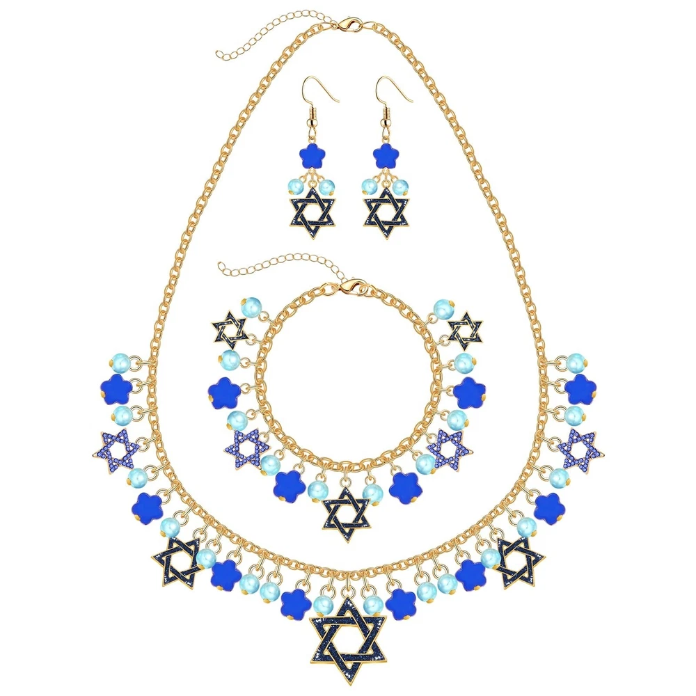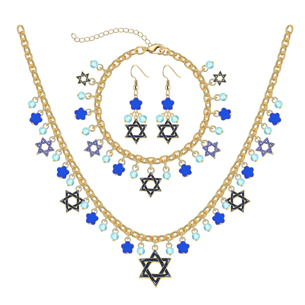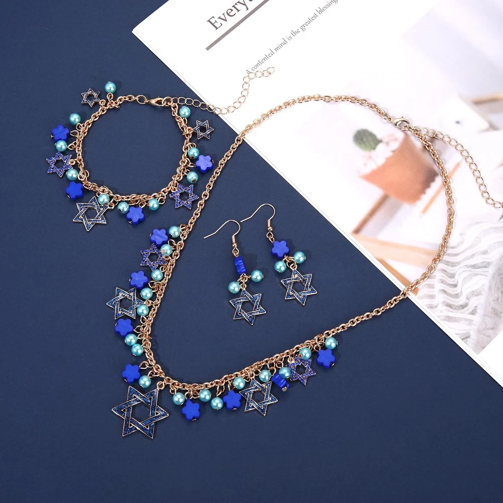 Hanukkah Earrings Necklace Bracelet Star of David Earrings Blue Beads Star of David Charms Bracelet Necklace Jewish Festival of Lights Chanukah Jewelry Product Details Style: hanukkah jewlery set A Brand: GLBCC MPN: 1222 UPC: 785582844722 EAN: 0785582844722 Department : womens Date First Available : October 21, 2024 Brand, Seller, or Collection Name: GLBCC Material: Metal Gem Type: No Gemstone Chain: Link Clasp: Lobster Clasp Metal: alloy Metal stamp: No Metal Stamp Stone shape: Star Minimum color: blue Hanukkah Earrings Bracelets Necklace Glitter Star of David Earrings Blue Pearl Beads Star of David Charms Bracelet Necklace Jewelry Set for Women Jewish Festival of Lights Chanukah Jewelry Accessory