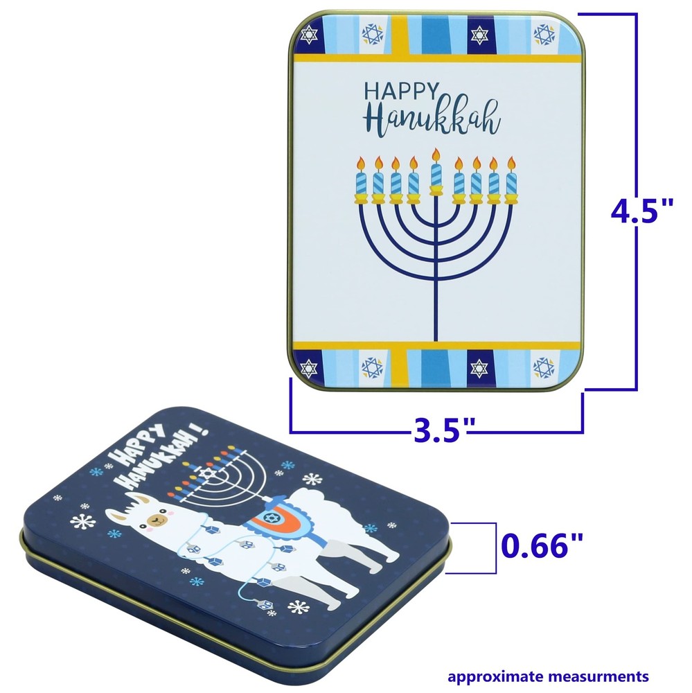 Gift Card Tins, Hanukkah, 6-Pack About the Product Spice up your gift-giving prowess this holiday season with these cute Hanukkah gift card tins! These festive tins are a great way to share gift cards, cash, or checks with friends and family. These three colorful designs stand out from the crowd. Each tin will hold a standard gift card. Includes (6) tins. Key Features Spice up your gift-giving prowess this holiday season with these cute Hanukkah gift card tins These festive tins are a great way to share gift cards, cash, or checks with friends and family Three colorful designs stand out from the crowd Each tin will hold a standard gift card Includes (6) tins Delivery Information Our shipping is prompt and secure. Orders are dispatched within 1-2 business days. It should take 3-5 business days for the product to reach your destination (Saturday and Sunday excluded). We do not ship to a different address. we will ship to the address you provide on the ebay only. Please check your address before purchase. Return Policy Returns are accepted within 30 days if you are not completely satisfied. Refunds are issued back to your original payment method. Items must be returned in their original condition and packaging. Payment Options We accept PayPal, credit cards, and other payment methods supported by eBay. Please ensure your payment details are up-to-date to avoid any delays. Your Feedback Matters We appreciate your feedback. If you're happy with your purchase, please consider leaving a positive review. Contact Information If you have any queries or require further assistance, please contact us via eBay messages.