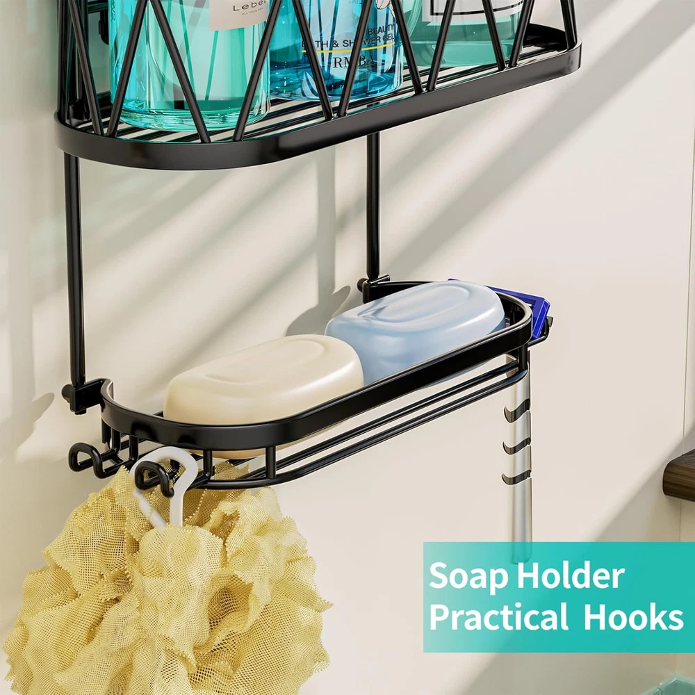 HapiRm Shower Caddy over Head, 11.02*4.37*26.3 inches, A-Black Product Details Specific Uses For Product: Bathroom Accessories, Showers,Shower Head,Bathroom Material: Stainless Steel Special Feature: Waterproof, Mildew Resistant, Easy Installation, Rust Resistant, Space saving Color: A-Black Brand: HapiRm Finish Type: Polished Product Dimensions: 4.37"D x 11.02"W x 26.3"H Shape: Rectangular Capacity: 30 Pounds Package Type: Standard Packaging Number of Items: 1 Maximum Weight Recommendation: 30 Pounds Manufacturer: HapiRm Part Number: ZWJ88-B Item Weight: 1.87 pounds Country of Origin: China Item model number: ZWJ88-B Size: 11.02*4.37*26.3 inches Finish: Polished Item Package Quantity: 1 Special Features: Waterproof, Mildew Resistant, Easy Installation, Rust Resistant, Space saving Included Components: 1*hanging shower shelf, 4*adhesives (with screw) Batteries Included?: No Batteries Required?: No Specific Uses For Product: Bathroom Accessories, Showers,Shower Head,Bathroom Material: Stainless Steel Special Feature: Waterproof, Mildew Resistant, Easy Installation, Rust Resistant, Space saving Color: A-Black Brand: HapiRm Finish Type: Polished Product Dimensions: 4.37"D x 11.02"W x 26.3"H Shape: Rectangular Capacity: 30 Pounds Package Type: Standard Packaging Mounting TypeItem Weight: Hanging Mount1.87 Pounds Number of CompartmentsUnit Count: 31.0 Count [Stable Adhesive]: Equipped with the anti-slip rubber and strong adhesives, our hanging shower caddy firmly grips the wall, so it will not fall down easily. You can enjoy a comfortable shower experience with this hanging shower organizer [Durable Stainless Steel]: Made of 304 stainless steel, our shower caddy's appearance is low-key and luxurious, HapiRm shower caddy over showerhead has excellent drop-resistant durability design, can effectively prevent rust even in wet conditions [Fast Draining Shower Caddy Shelf]: Hollow design of the shower rack can quickly drain the moisture on the toiletries and shower shelves, keeping the bathroom clean and fresh, will be your most effective helper during bathing [Practical and Multiple Use Shower Storage]: Soap holder can elevate your shower experience as you don't need to find another place to put your soap. This practical hanging organizer will keep your shower essentials like soaps, body lotions well-organized [Compact Capacity Shower Shelf]: Measuring 11.02*4.37*26.3 inches, our bathroom caddy for shower is designed to save space in your bathroom. HapiRm shower caddy hanging can stores all the toiletries in one place, greatly reduces the occupation of bathroom [Practical and Considerate Hooks]: The 4 hooks of our bathroom caddy provide you shower storage so you can organize your shower tools well, using them to hang towels, razors, and so on. HapiRm shower organizer hanging keeps everything within reach [Effortless Installation]: Setting up the bathroom shower organizer has never been easier. Our bathroom shower caddy doesn't require any tools, and the clear installation process will have your space organized in no time [Professional Services]: If you are not satisfied with this hanging shower caddy over shower head, please consult our customer service staff. HapiRm after-sales service will be the shield of every customer