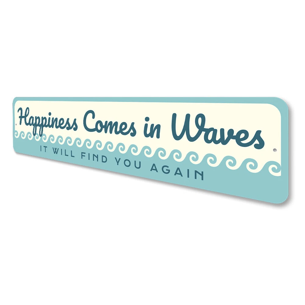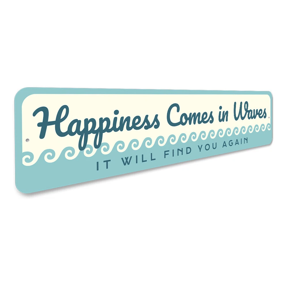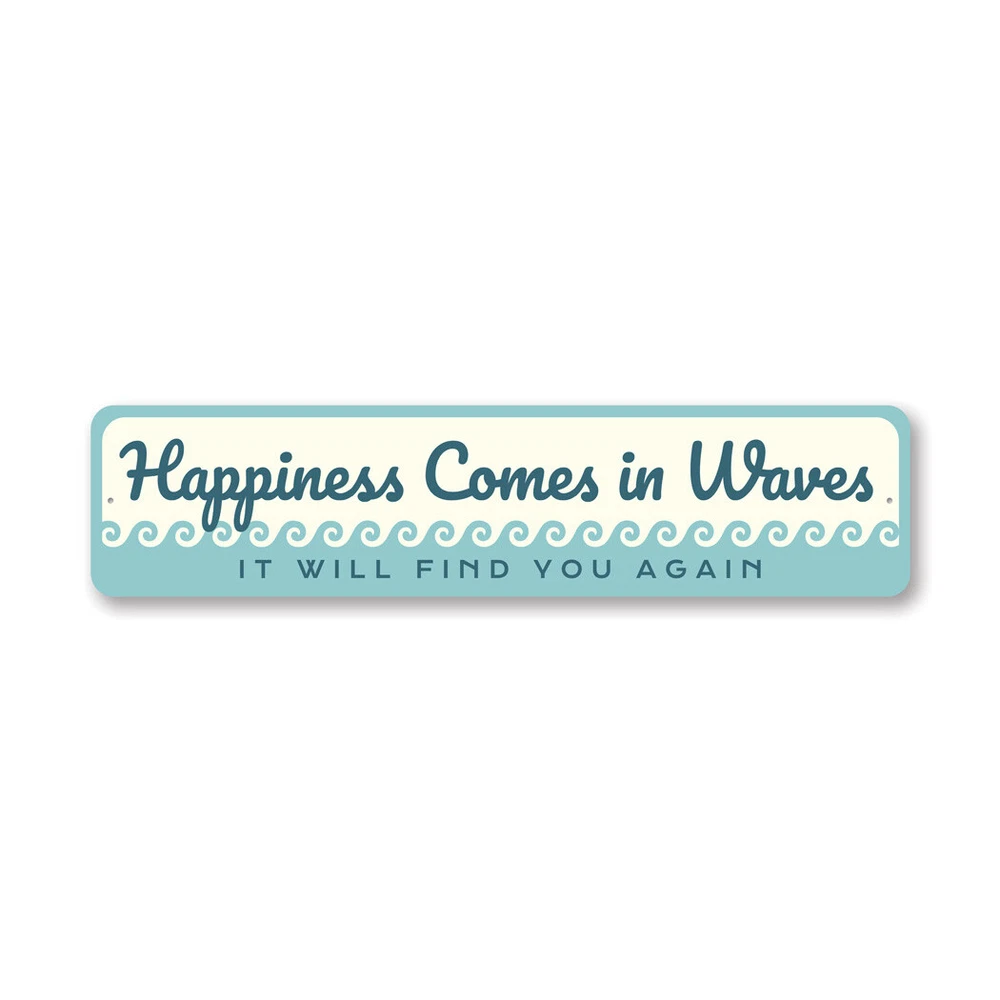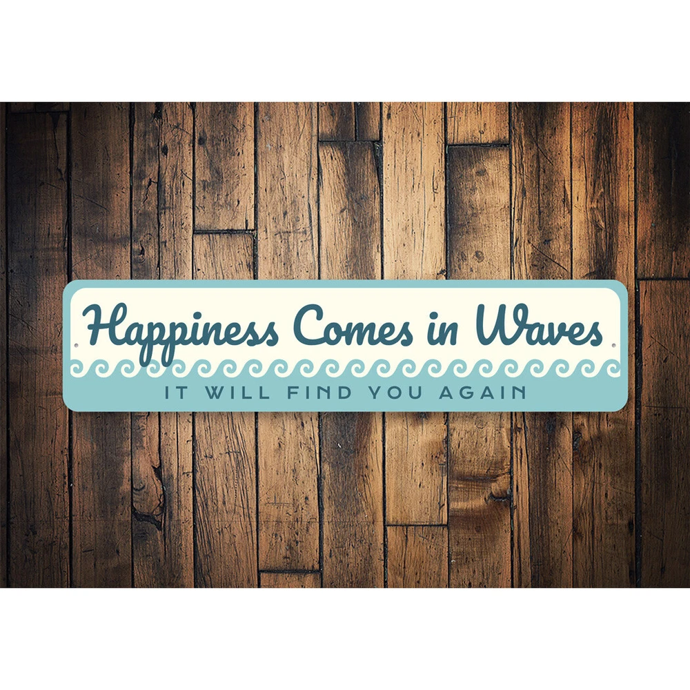 The Lizton Sign Shop Product Description Happiness Comes In Waves Metal Sign **there may be slight variations in color and text spacing, however your sign will be very similar to the image above. Quality Aluminum Street Signs Sign Information Aluminum Brand New Sign Comes with rounded corners and pre-drilled for easy hanging. We use the highest quality materials - 100% USA-made! Great Gift Idea - Our signs truly make a one of a kind gift. Personalize the sign with the text you want to add. Custom text for the sign can be sent to us via email. A BRAND NEW SIGN!! All of our street signs are made of premium materials. The sign itself is made of aluminum and will never rust providing years of enjoyment indoors and outdoors. No Cheap plastic!! The Lizton Sign Shop specializes in quality personalized custom aluminum signs for any occasion. These make the perfect sign for any man cave, office, basement, garage, college dorm, kids bedroom, game room, bar, pub, tavern or countless other places. *Colors may vary slightly from one computer screen to the next but the image should be very close. All content and designs are subject to copyright and may not be reproduced in any form. Payment Methods We would prefer payment to be made through paypal but we also accept all major credit cards. If you select the credit card option please contact us after you make your purchase and we can walk you through the steps to make a secure payment. Return Policies We will accept returns within 30 days of the purchase date. The buyer is responsible for any costs to return the item or items. Returns will only be accepted for items that were damaged in shipping or if we made an error in the manufacturing of your item, i.e. spelling error.