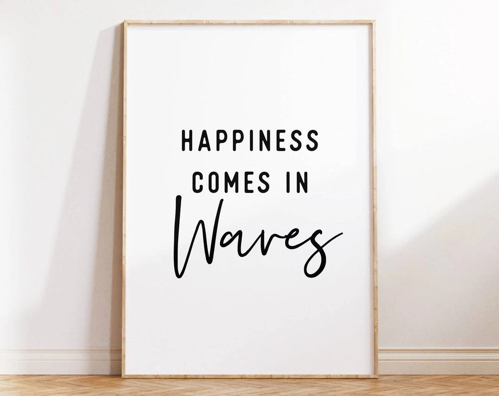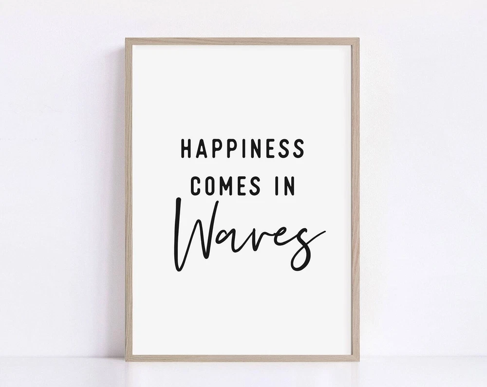 Happiness Comes In Waves Wall Art Printable Beach House Sign Motivational Quotes Print Poster Coastal Wall Decor Material: Premium luster photo paper Print type: Inkjet printing One side printed + The finish provides the highest possible resolution and color saturation + Lasts up to 200 years in color and 400 years in black-and-white + Printed on high-quality resin-coated photo base paper medium + Posters can be hung with double-sided tape, tacks, or framed + Hand washing with a gentle cry cloth is recommended for extended durability I will hand select the best choice of paper for your chosen design to ensure top quality results for a beautiful, bright and luxurious print. All prints are sealed in cellophane slips for protection during transportation, and are shipped in a protective cardboard envelope.