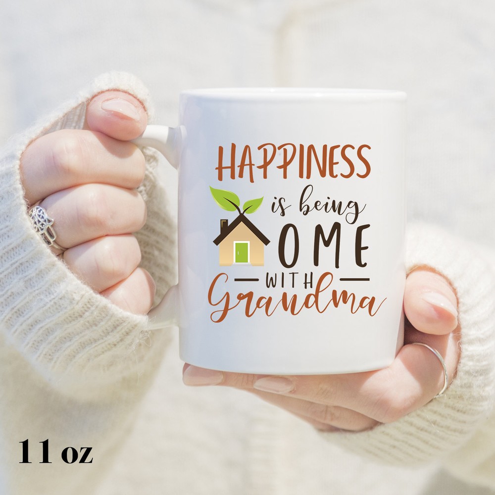 Happiness Is Being Home With Grandma Mug Grandma Mug Cute Grandma Mug Grandma Product Details.. This high quality 11oz. ceramic white mug has a premium hard coat that provides crisp and vibrant color reproduction sure to last for years. Perfect for all hot & cold beverages. The highest quality printing possible is used. It will never fade no matter how many times you wash it. Material: 100% Ceramic. Print both sides. Dishwasher and Microwave Safe. High Gloss + Premium White Finish. Printed in the U.S.A. Personalized & Custom. We support personalized and custom mug to add custom, when placing an order, you can add notes to the "order note" in shipping address section. Also you can contact us directly via message. Shipping Info. Ready to ship in 1 to 2 business days, All products are made-to-order and proudly printed in the United States. Shipped by USPS and DHL, You will receive your order in 5-7 days. Replace & Refund. All products are defective during shipping broken, chipped will be replaced free of charge. You are not satisfied with the product, we will refund 100% money to you. If any other issues arise, please do not hesitate to message, we would be more than happy to assist you.
