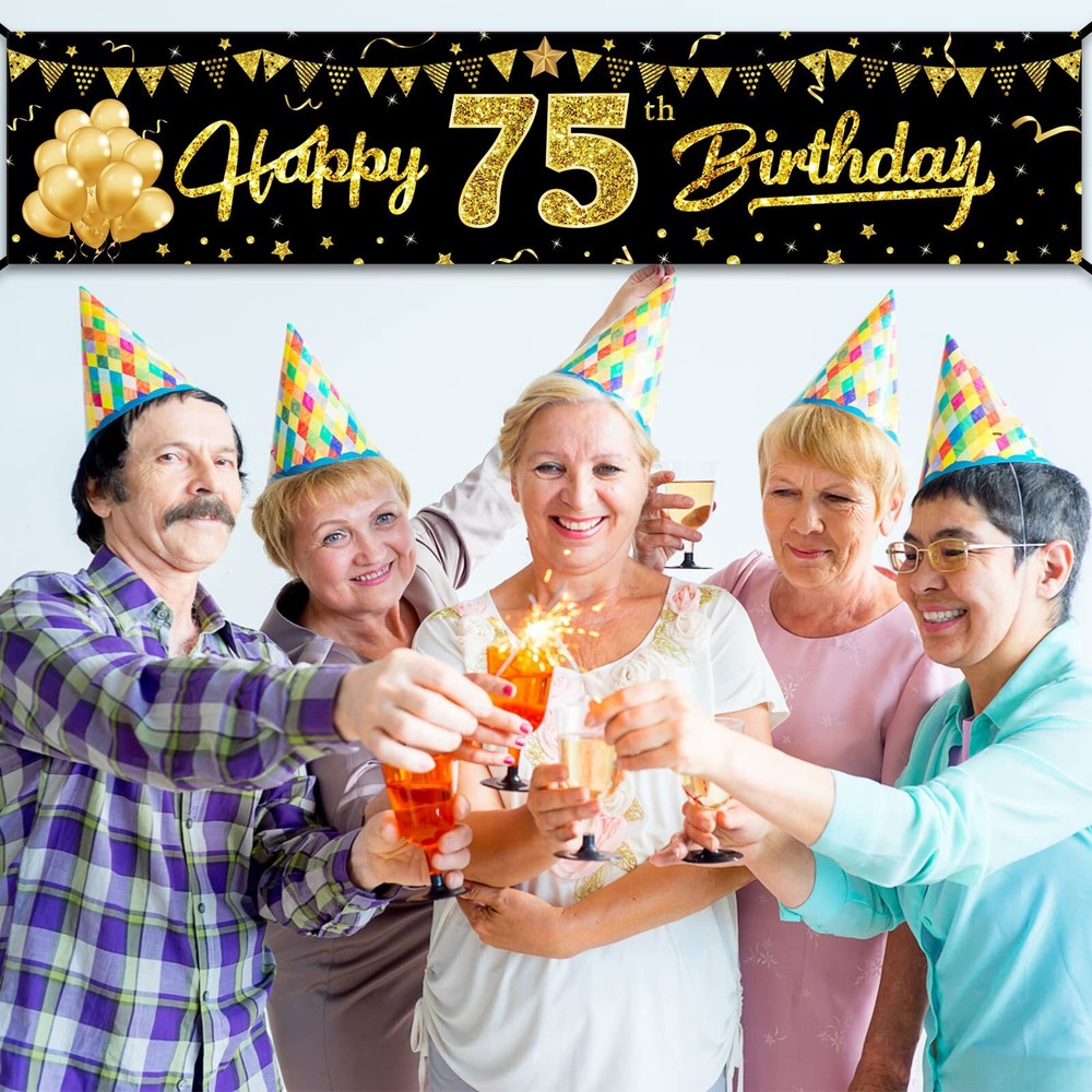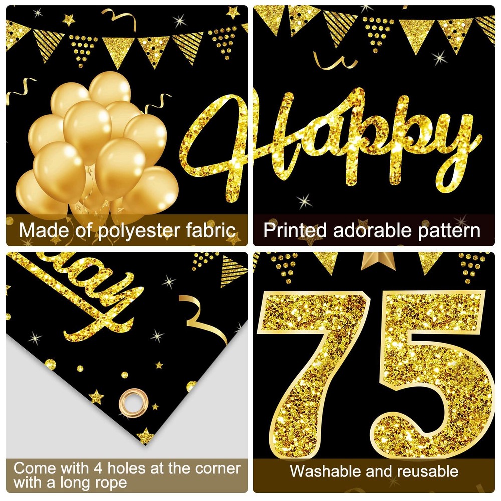 Happy 75th Birthday Banner Decorations for Men Women Black Gold 75 Yard [You Will Get]-1pcs black gold "Happy 75th Birthday" banner party decoration. The size is 72.8 x 15.7 inches. This banner sign can well highlight your 75th birthday theme and create a strong party atmosphere. [Note: poles or stakes are not included in the package] [75th Birthday Theme]-Using classic black gold color with exquisite big balloons, stars, ribbons, pennants, dots and other rich party elements. The number "75" composed of shiny sequins is very eye-catching, it will add highlights for your 75th birthday party. [Applicable for]-Very suitable for 75th birthday party activities. It can be used indoor and outdoor. It can be hung on the front door, porch, wall, window, ceiling, fence, tree branch, etc., and it can also be used as the background of the photo. [Well Material]-Made of thick polyester fabric. It is light weight, easy to carry, washable, foldable, tear-resistant, and reusable. [Easy to Use]-There are copper holes on the four corners of the banner. You only need to use the attached rope through the copper hole to easily hang it up to decorate your party. Happy 75th Birthday Banner Party Decorations -Material: polyester fabrics -Size: 72.8 x 15.7 inch -Color: black, gold -Package includes: 1 x ''Happy 75th Birthday'' banner -Widely using: It can be used for your happy 75th birthday party activities. You can hang it on the wall, balcony, yard, garden, lawn, deck, swimming pool and other places, and it is also a good background for shooting. -Usage method: Just use the rope to go through the hole in the corner of the banner and hang it. Shipping We offer FREE shipping on all orders! We ship within Three business days of payment, usually sooner. We use a selection of shipping services such as UPS, FedEx, USPS etc. We only ship to the lower 48 states, no APO/FPO addresses or PO Boxes allowed. Local pickups and combined shipping options are not provided at this time. Return You can return a product for up to 30 days from the date you purchased it. Any product you return must be in the same condition you received it and in the original packaging. Please keep the receipt. Payment We accept payment by any of the following methods: PayPal Please pay as soon as possible after winning an auction, as that will allow us to post your item to you sooner! Feedback Customer satisfaction is very important to us. If you have any problem with your order, please contact us and we will do our best to make you satisfied. Contact Us If you have any queries, please contact us via ebay. We usually respond within 24 hours on weekdays. Please visit our eBay store to check out other items for sale! Thank you for shopping at our store.