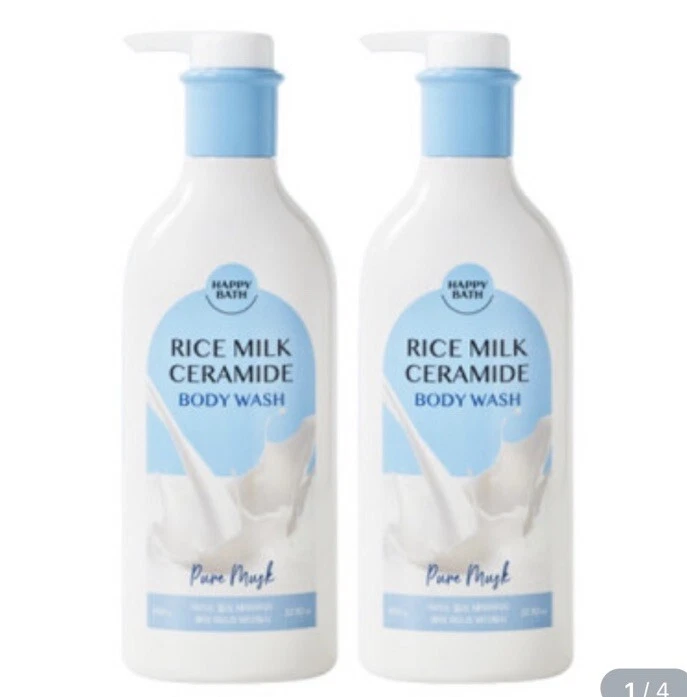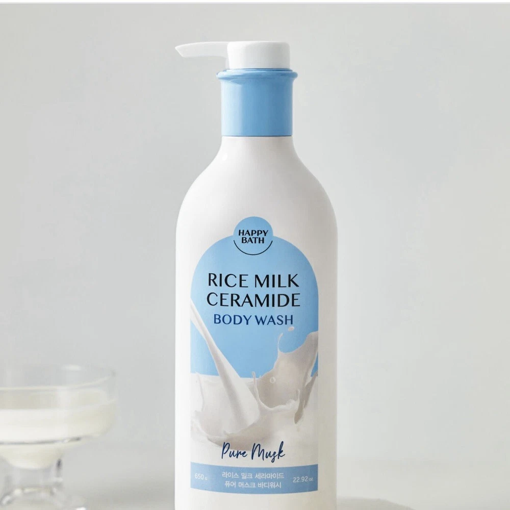 Happy Bath Rice Milk Ceramide Pure Musk 2EA 650g Body Wash K-beauty Korea.