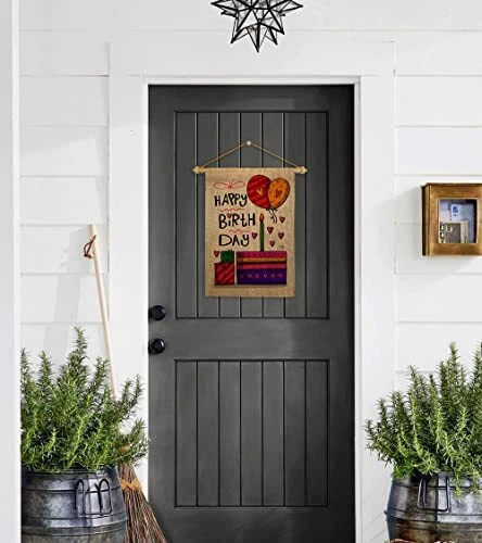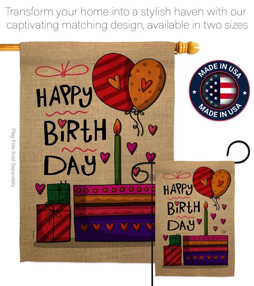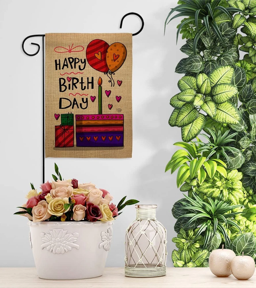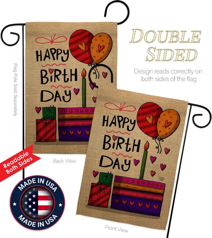 Happy Birth Day Garden Flag - Set Wood Dowel Celebration Birthday Cake Gift P...