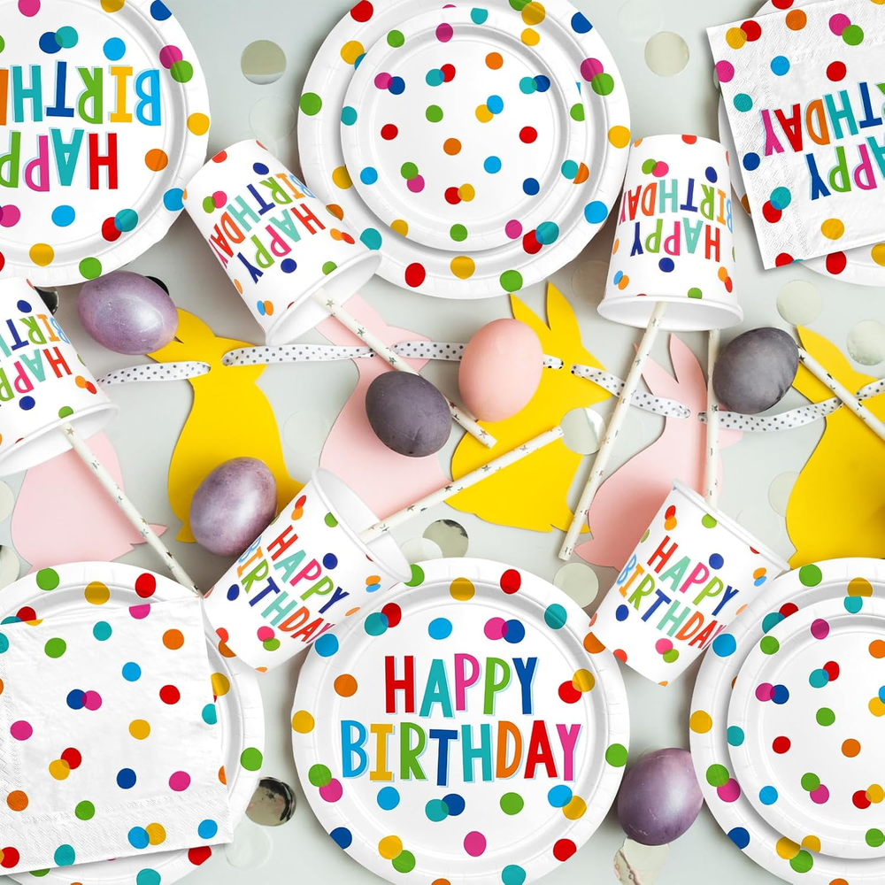 Store New Arrivals Add to Favorite View Feedback Contact Fast deliveries to the customer's home Quality customer service John Make the customers happy! Happy Birthday Decorations: Kids' Birthday Party Supplies with Dots Design - Multicolor, 16 Count, Serves 16 Description Comprehensive Birthday Set: Our package includes 16pcs of 9" happy birthday plates, 16pcs of 7" paper plates, 16pcs of 6.5" * 6.5" paper napkins, 16pcs of 9oz paper cups, Making it perfect for birthday party supplies. ECO-FRIENDLY & DURABLE PARTY TABLEWARE: the disposable paper plates, cups and napkins made of thick paper material and are all printed with food grade water-based ink which is suitable for food contact. Time Effective: The use of disposable tableware saves you from the hassle of spillages and cleaning, giving you more time to celebrate and enjoy your Building Block party with your family and friends. Inviting Look: The round paper happy birthday plates feature a colorful "Happy Birthday" headline printed onto a multicolored dotted background that is made to attract and please your guests. Functional: The three-ply paper napkins come with the colorful 'Happy Birthday' printed onto a multicolored dotted background whilst offering the perfect solution for wiping spills and cleaning hands after a delicious meal, making them an essential part of your Happy Birthday Decorations. Product description Style Dots Design Color Multicolor Pattern Dots Material Paper Item Weight 1.34 pounds Collection Name Birthday Package Dimensions 9.88 x 8.74 x 4.33 inches Product Care Instructions Disposable, intended for single use only ABOUT US We offer the best prices around on high quality products. Our E-store includes media such as books, movies, music and games while offering electronics, toys, sporting apparel, clothing, tools, general home, garden items and more. SHIPPING We are always working hard to ensure your package arrives as soon as possible. Please understand that some factors like weather, high postal traffic, and the performance of shipping companies are outside of our control. We offer free shipping to the lower 48 states and ship within 2 business days of payment, usually sooner. We do not accept P.O. Boxes. Please provide a physical address. For shipping outside of the continental USA, we only use eBay's Global Shipping Program. The item is shipped to KY and then sent to the rest of the world. International customers are responsible for all duties and taxes. Continue to 'check out' to calculate costs for shipping the item to your country. Messages regarding eBay's Global Shipping Program MUST be directed at eBay EXCLUSIVELY. RETURNS We offer a 30-Day Return Policy on items in which you are not completely satisfied with. You have the option of a full-refund or an exchange of the item. No returns are available on items shipped outside of the USA PAYMENT We accept PayPal. CONTACT US This page content is yet to come Please ad us to your favorite seller and visit again later Thank You CUSTOMER SATISFACTION We try our very best to make sure every customer is completely satisfied. If there's a problem, message us! We're happy to help. WE ACCEPT
