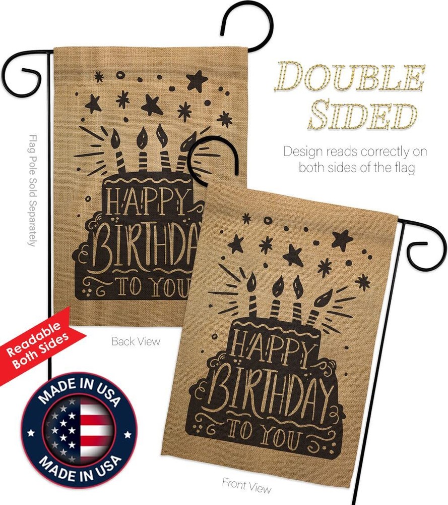 PROUDLY Made In USA - Package And Product Designed In California PURCHASE WITH CONFIDENCE - From 's US Authorized Resellers MADE OF DURABLE - 100% Thick Polyester Fabric construction helps resist the wear and tear from frequent use TEXT READABLE BOTH SIDES - Garden Flag Set Double-Sided Print DURABLE FLAG - Double stitching panels on multiple rows and high quality Sleeve to provide lasting strength VIBRANT COLORS - With UV-Resistant Maintains Its Colors All Season Long FEATURES - Free Breaks Down Metal Garden Flag Pole Included!