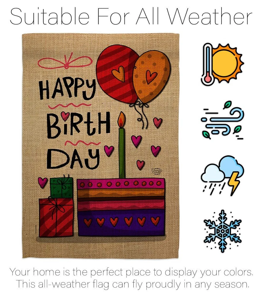 Happy Birthday Garden Flag with Wood Dowel – Celebration Cake Gift Party Decor