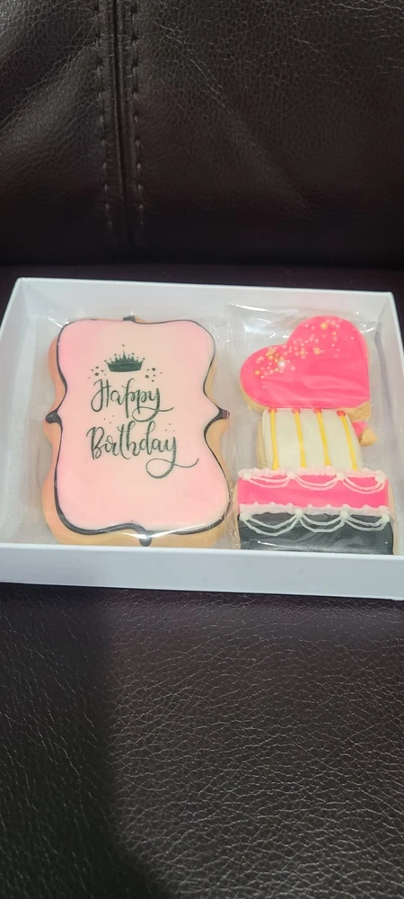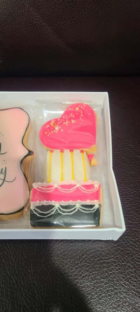 Happy Birthday, Gift Basket Custom Sugar Cookies New Imperfect Box Item is brand new and sealed in its bag, but the outer box is opened, and the heart cake is chipped at the bottom. Please view pictures to confirm the item to be received.
