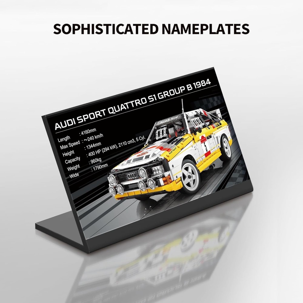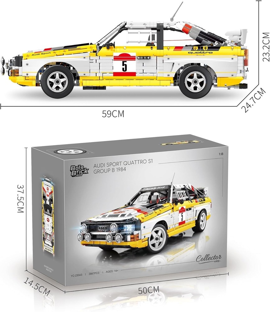 Happy Build - Bole Brick YC 23043 Technik Audi Sport Quattro 1984 New Original Packaging. Mit fast 3.900 Teilen und einer Größe von knapp 60 cm Länge eignet sich der Technik Bausatz für alle Motorsportfreunde. Ob für die eigene Sammlung oder als besonderes Geschenk – dieser Sportwagen-Bausatz vereint Bauvergnügen, technisches Verständnis und ein eindrucksvolles Endergebnis. Happy Build Technik Audi Sport Quattro1984 Der Happy Build YC-23043 Audi Quattro überzeugt mit seinen Details, Leucht-Kit und der offiziellen Audi Lizenz. Mit fast 3.900 Teilen und einer Größe von knapp 60 cm Länge eignet sich der Technik Bausatz für alle Motorsportfreunde. Das Modell überzeugt durch zahlreiche realistische Funktionen und kann – je nach Version – entweder als statisches Ausstellungsstück oder mit Motoren und Fernbedienung als fahrbares Fahrzeug gebaut werden. Die Motoren sind nicht enthalten und müssen separat gekauft werden. Der Aufbau gelingt dank farbig illustrierter Anleitung und übersichtlich sortierter Beutel Schritt für Schritt und macht das Projekt zu einer spannenden Herausforderung. Ob für die eigene Sammlung oder als besonderes Geschenk – dieser Sportwagen-Bausatz vereint Bauvergnügen, technisches Verständnis und ein eindrucksvolles Endergebnis. Marke Happy Build Modellnummer YC 23043 Maße 25×59×23 cm Altersempfehlung Ab 14 Jahren Steineanzahl 3887 Klemmbausteine Motorisierung Nein, statische Version. Motoren können separat erworben werden. Lieferumfang Gedruckte Bauanleitung 3887 Klemmbausteine Licht-Kit Originalverpackung Aufkleber Warum MaxiBricks? Blitzschneller Versand aus Deutschland mit DHL bei Lieferzeiten von 1-3 Werktagen Lieferung nur in Originalverpackung Versand mit schützendem Umkarton Schneller Support bei fehlenden Teilen und das rund um die Uhr! 30-tägiges Rückgaberecht Über 6000 glückliche Kunden Sollte es während der Nutzung zu Fragen oder Problemen kommen, steht Ihnen unser Kundenservice jederzeit zur Verfügung. Hinweis: Nicht für Kinder unter 3 Jahren geeignet. Erstickungsgefahr wegen verschluckbarer Kleinteile.