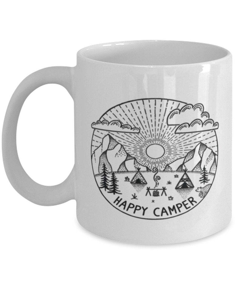 Camping Funny Coffee Mug Happy Camper - White Coffee Mug Product Details.. This high quality 11oz. ceramic white mug has a premium hard coat that provides crisp and vibrant color reproduction sure to last for years. Perfect for all hot & cold beverages. The highest quality printing possible is used. It will never fade no matter how many times you wash it. Material: 100% Ceramic. Print both sides. Dishwasher and Microwave Safe. High Gloss + Premium White Finish. Printed in the U.S.A. Personalized & Custom. We support personalized and custom mug to add custom, when placing an order, you can add notes to the "order note" in shipping address section. Also you can contact us directly via message. Shipping Info. Ready to ship in 1 to 2 business days, All products are made-to-order and proudly printed in the United States. Shipped by USPS and DHL, You will receive your order in 5-7 days. Replace & Refund. All products are defective during shipping broken, chipped will be replaced free of charge. You are not satisfied with the product, we will refund 100% money to you. If any other issues arise, please do not hesitate to message, we would be more than happy to assist you.